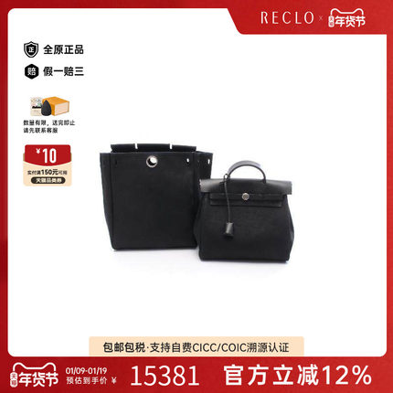 中古Hermes爱马仕女包A级95新herBag bagherBag帆布双肩包黑色
