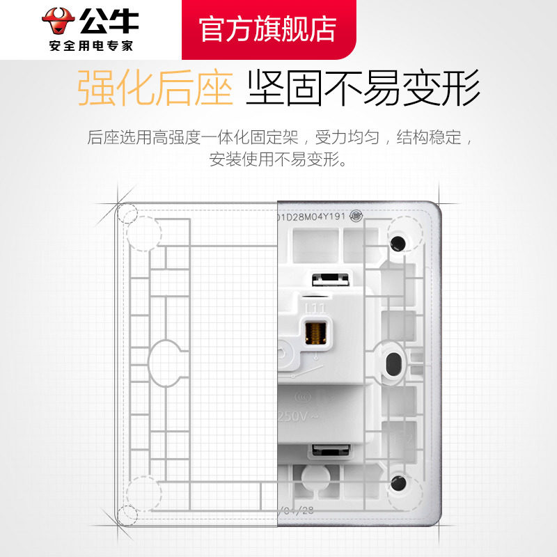 公牛插座旗舰开关插座家用暗装二开单控双开单控墙壁面板G12灰