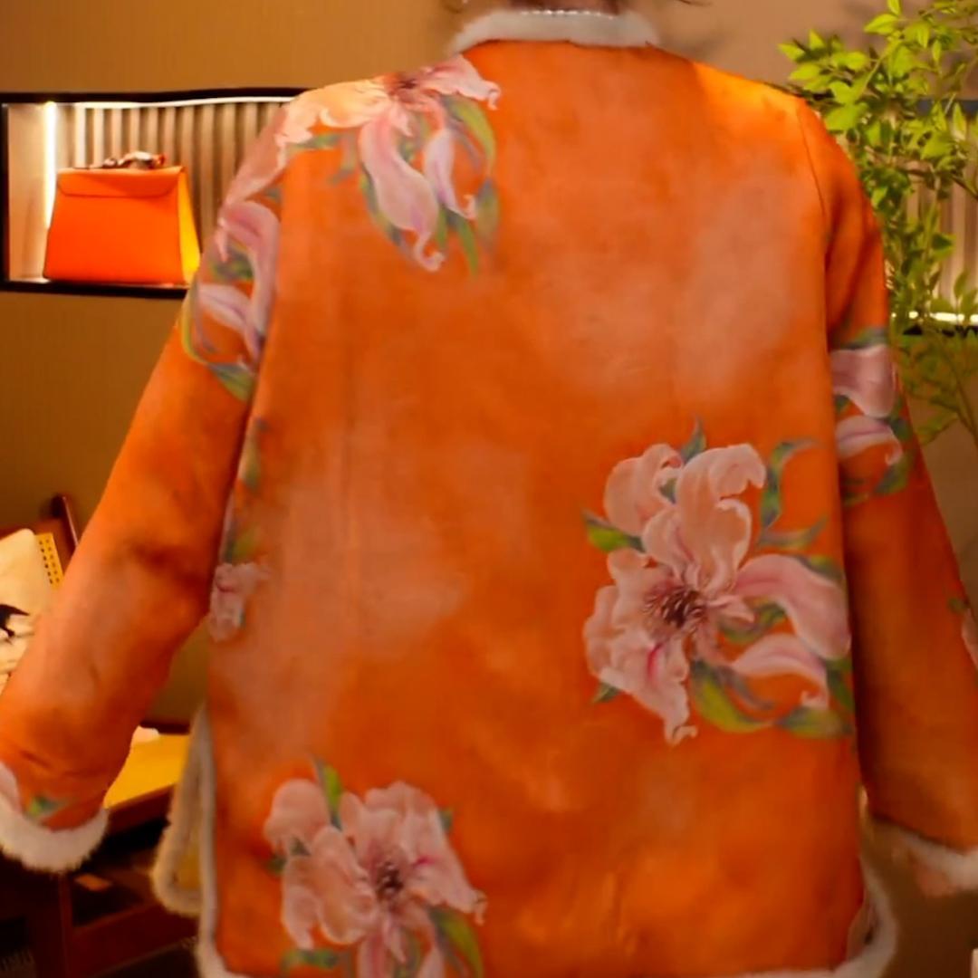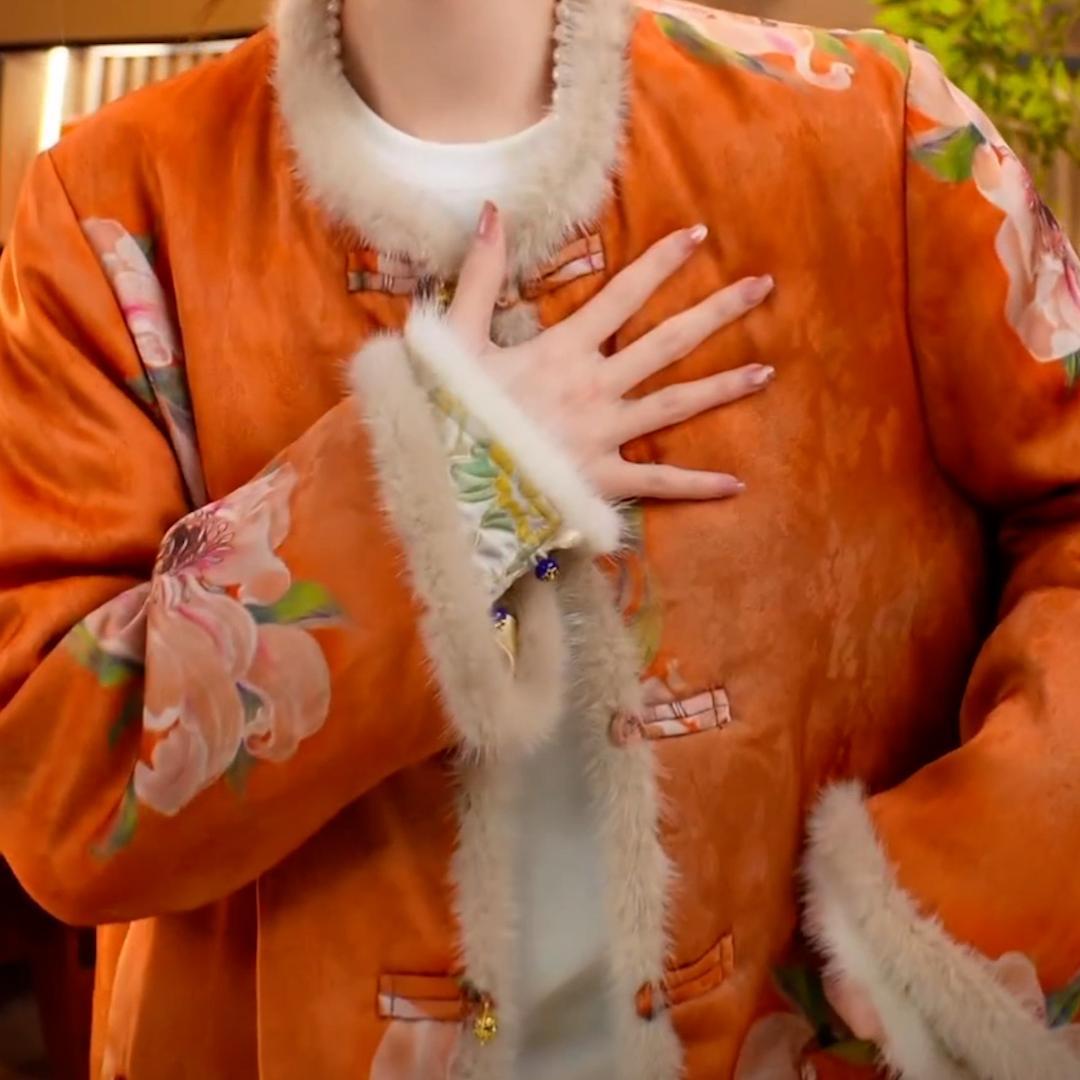 新中式重工印花毛领丝棉服女冬季新款气质减龄宽松显瘦保暖外套