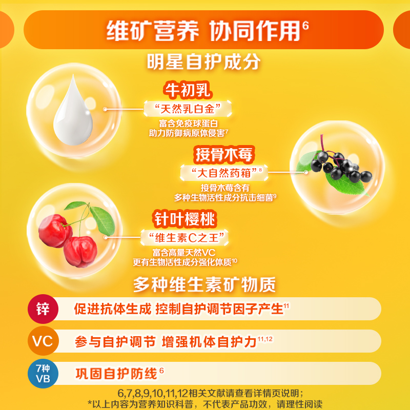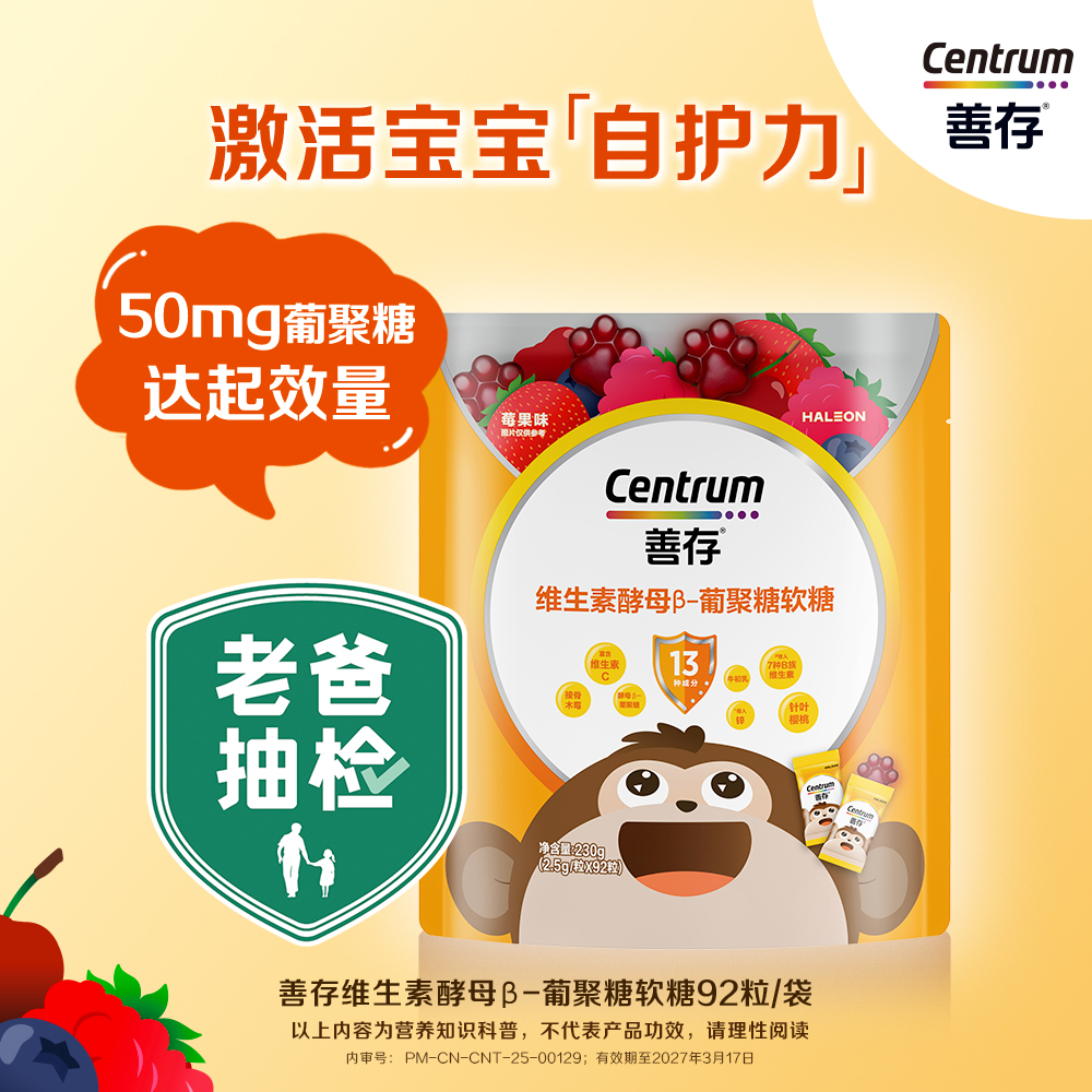 新品善存儿童维生素酵母β葡聚糖软糖针叶樱桃vc接骨木莓锌牛初乳