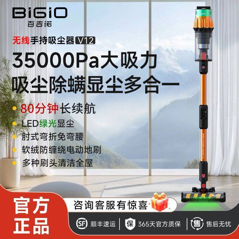 百吉诺550W大功率无线吸尘器大吸力长续航绿光显尘杆子可弯V12