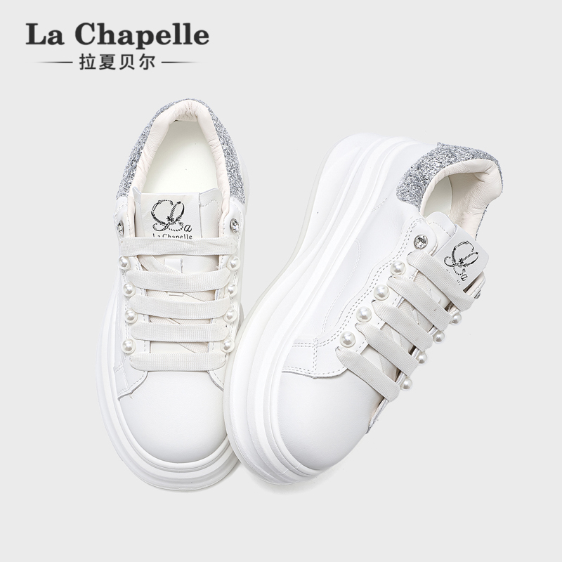 拉夏贝尔小白鞋女2025秋季新款松糕厚底时尚百搭休闲增高运动板鞋
