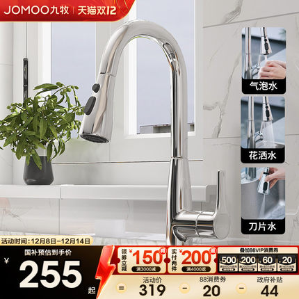 九牧卫浴三出水旋转冷热厨房水龙头水槽洗菜盆洗碗池抽拉式龙头