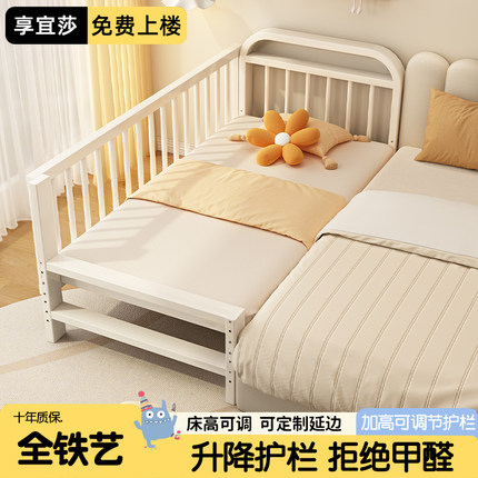 铁艺拼接床家用婴儿床边床加宽大人单人床定制加高护栏升降儿童床