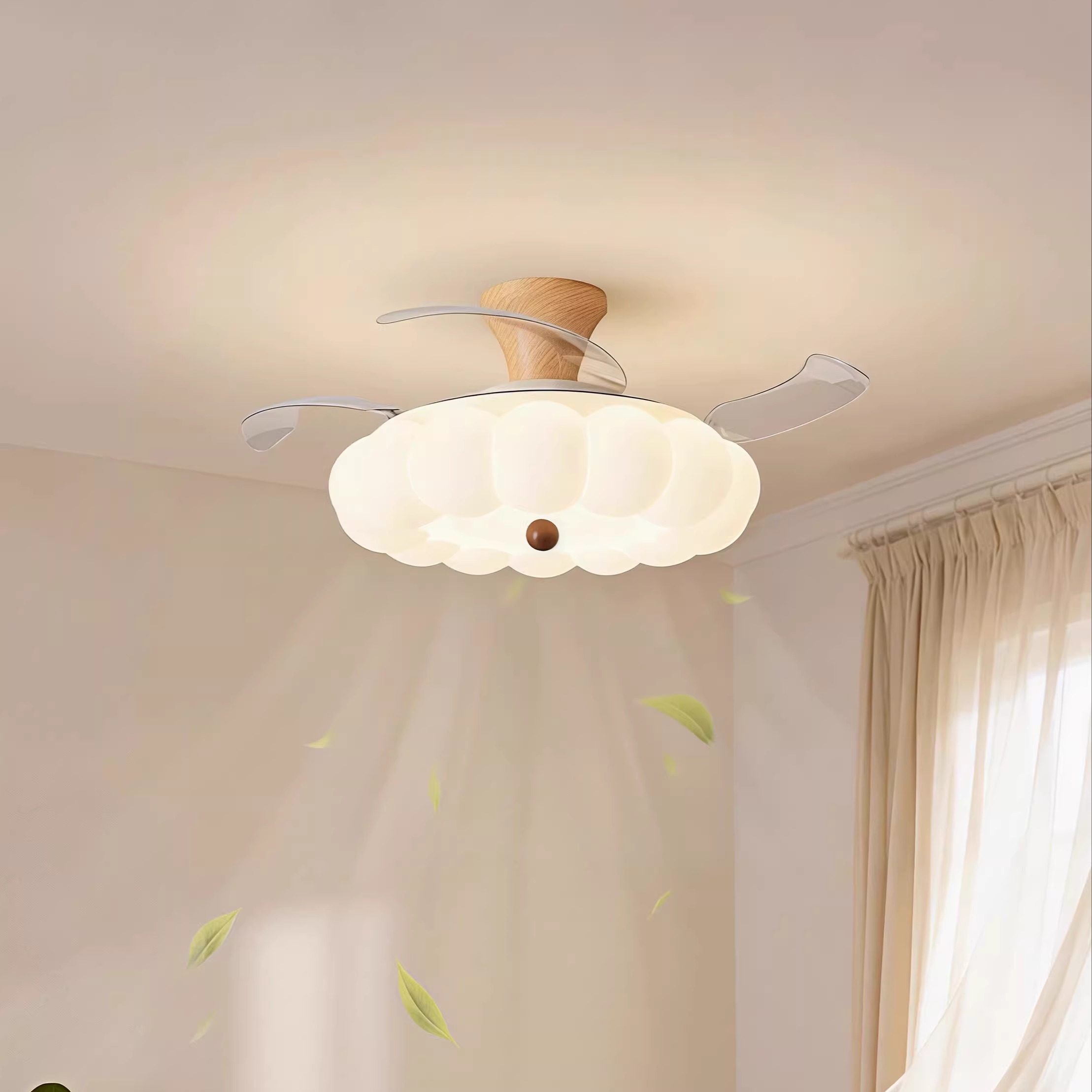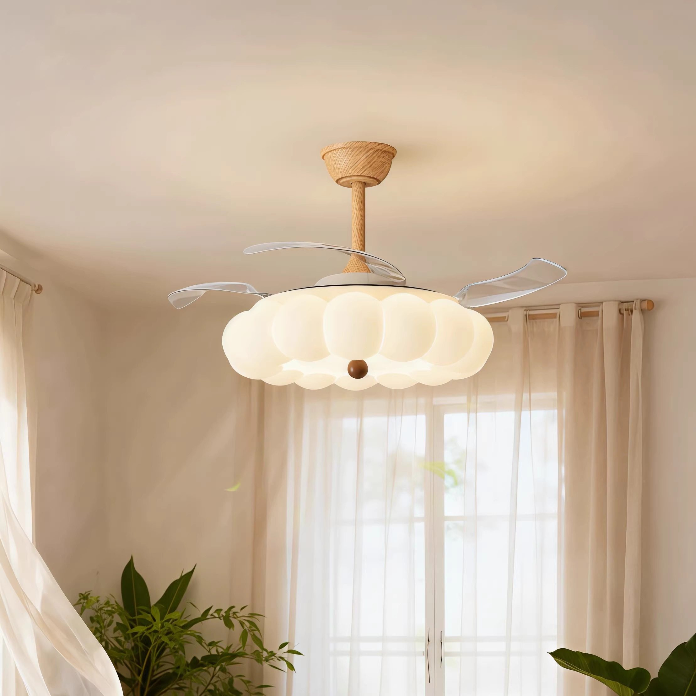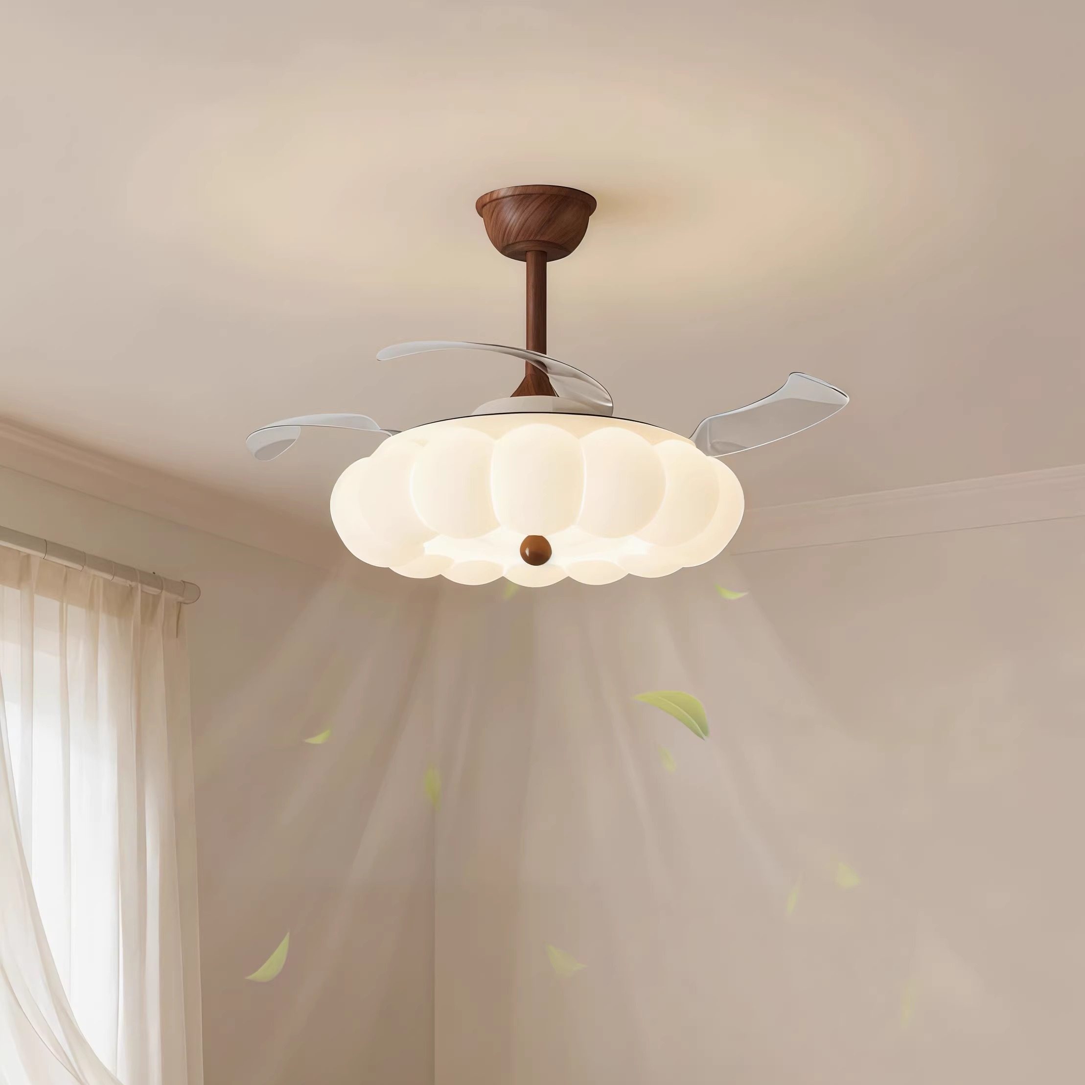奶油中古风卧室风扇灯餐厅客厅卧室一体隐形静音吊扇灯复古风扇灯