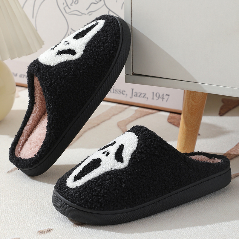 跨境新款万圣节骷髅卡通保暖冬季棉拖鞋男女情侣款家居室内棉拖鞋