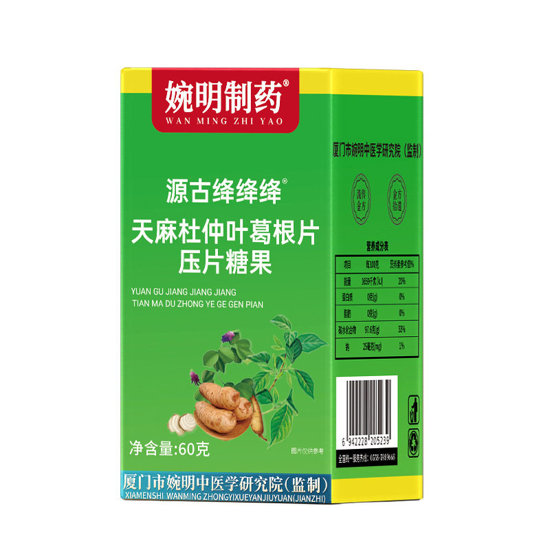 婉明制药牌天麻杜仲叶葛根片灵芝苦瓜西洋参蛹虫草咀嚼压片糖果