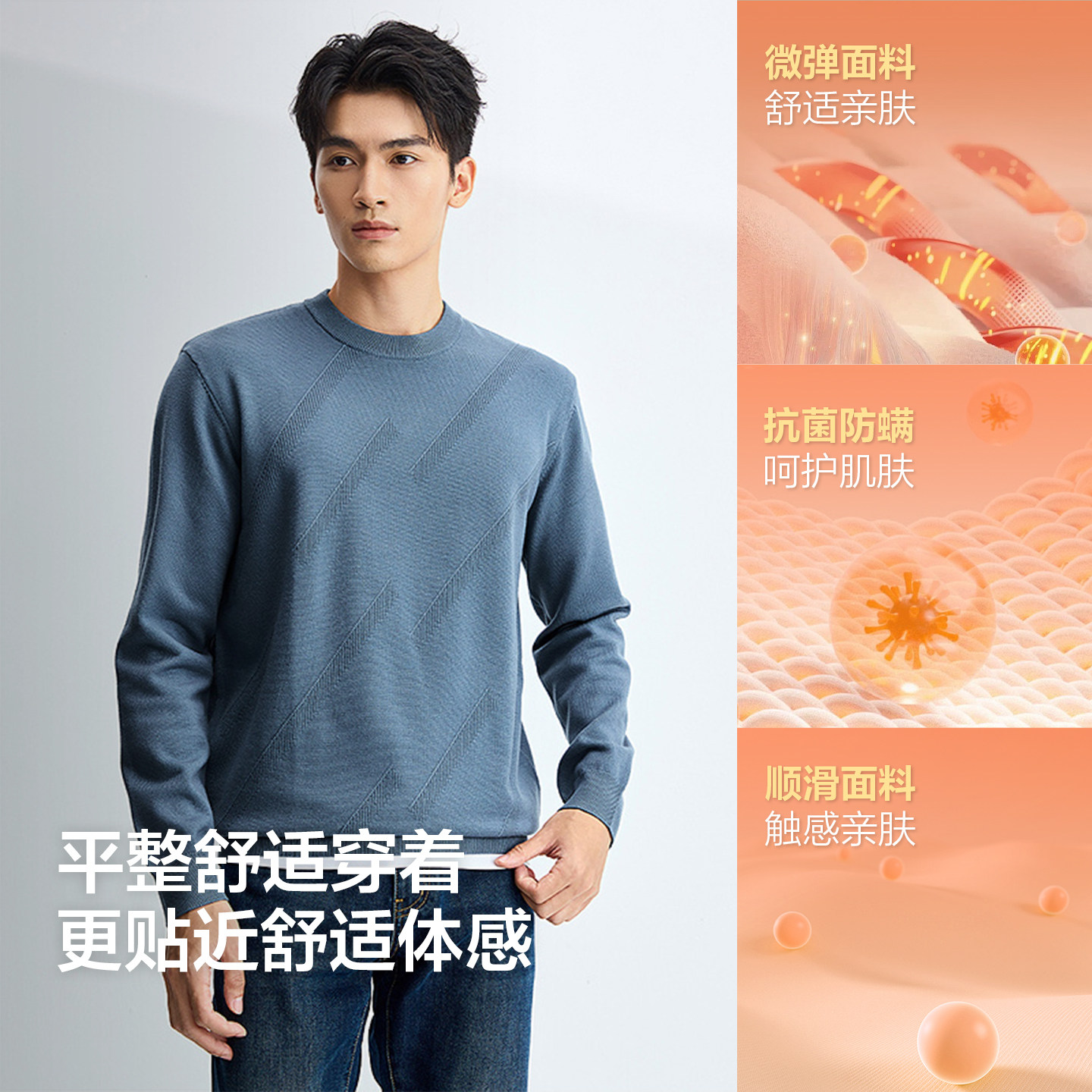 海澜之家男士毛衣25秋冬季新款圆领打底纯羊毛衫上衣针织爸爸男装