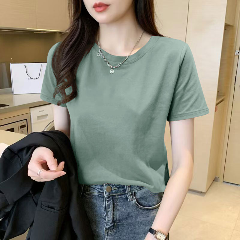 夏季时尚纯棉T恤女韩版宽松圆领洋气百搭休闲宽松纯色短袖上衣ins