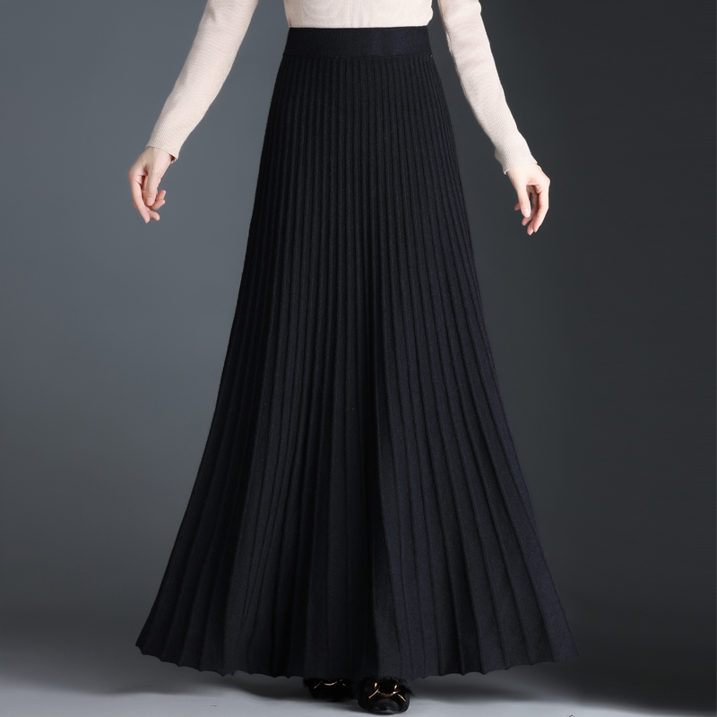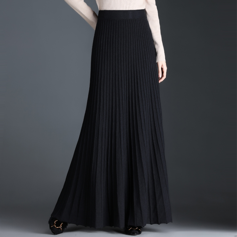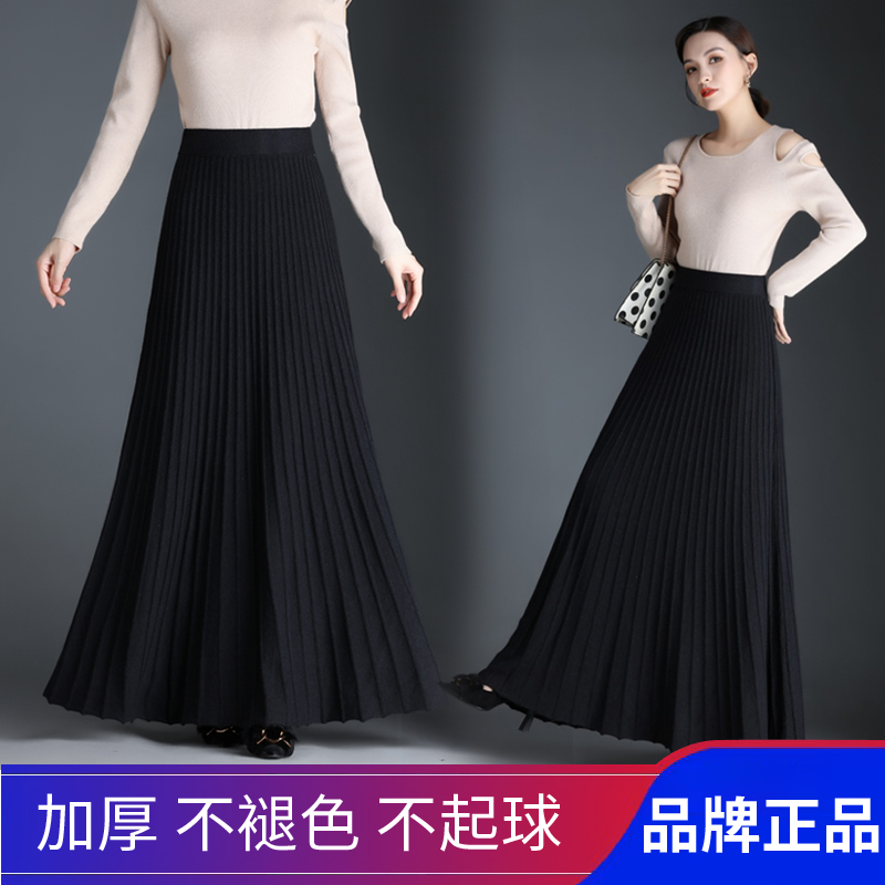 针织半身裙中长款到脚踝百褶裙女秋冬高级感毛线裙子垂感大摆伞裙