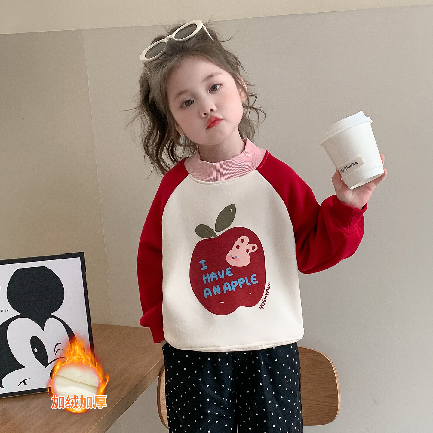 女童秋冬卡通印花卫衣2025新款儿童女宝宝时髦洋气加绒冬装打底衫