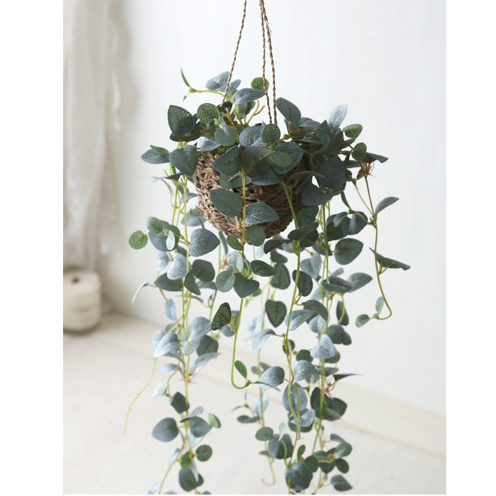 北欧ins仿真绿植藤编吊篮挂钩式花盆空气凤梨老人须壁挂装饰吊篮