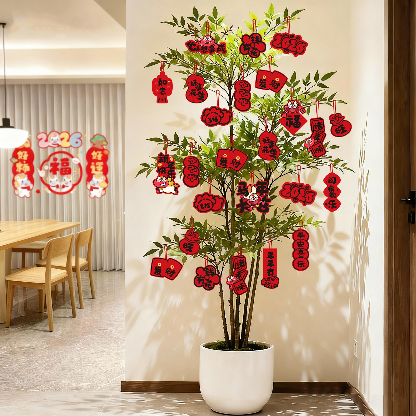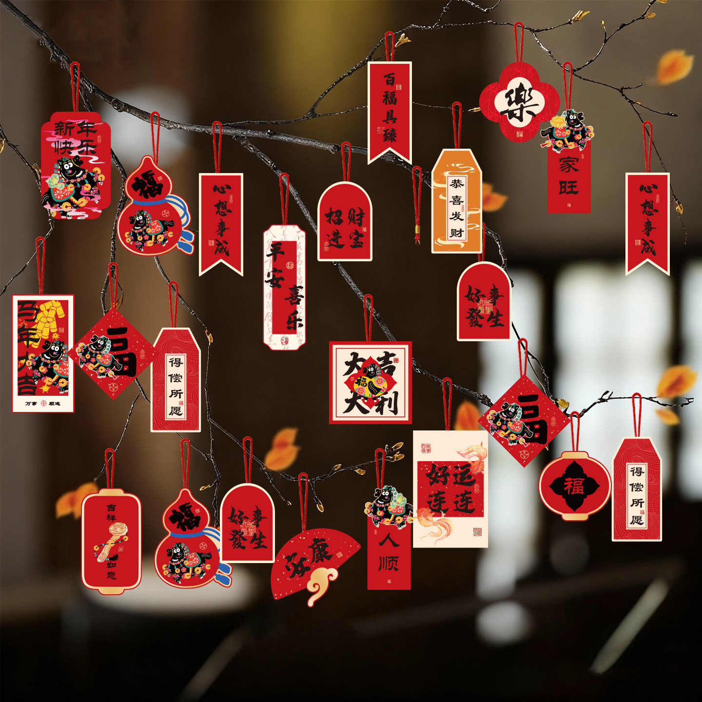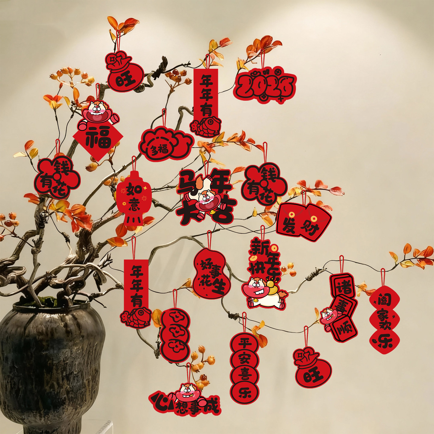 新年绿植吊卡2026马年许愿书签装饰中式祈福吊卡盆景挂件饰品挂饰