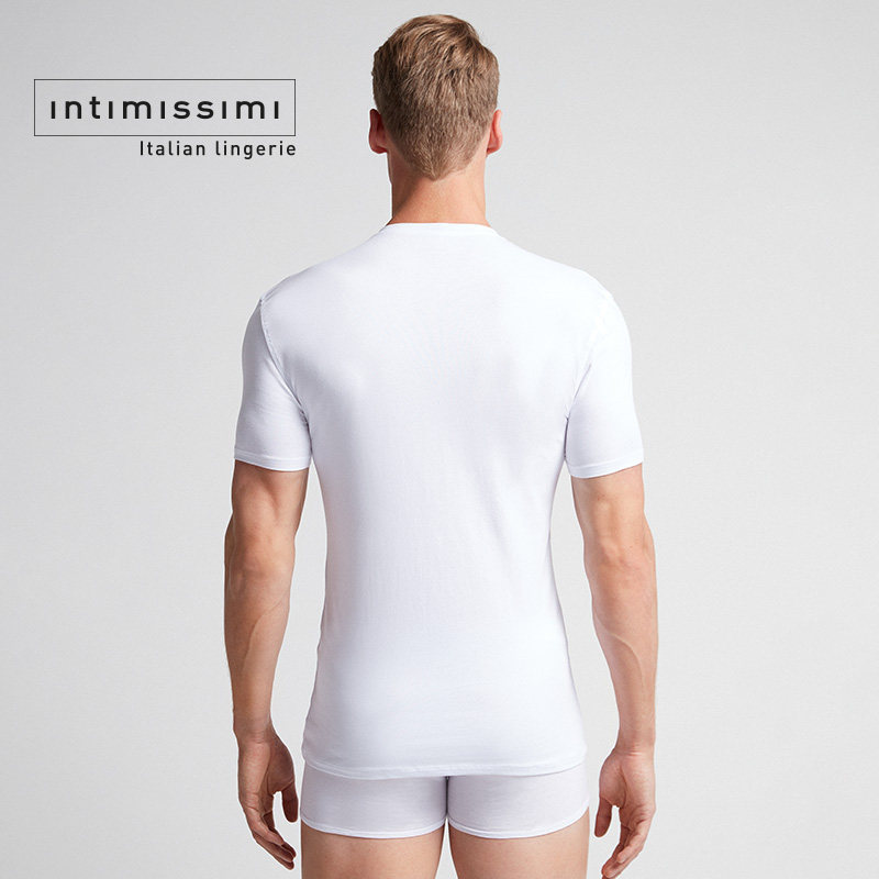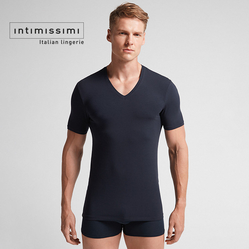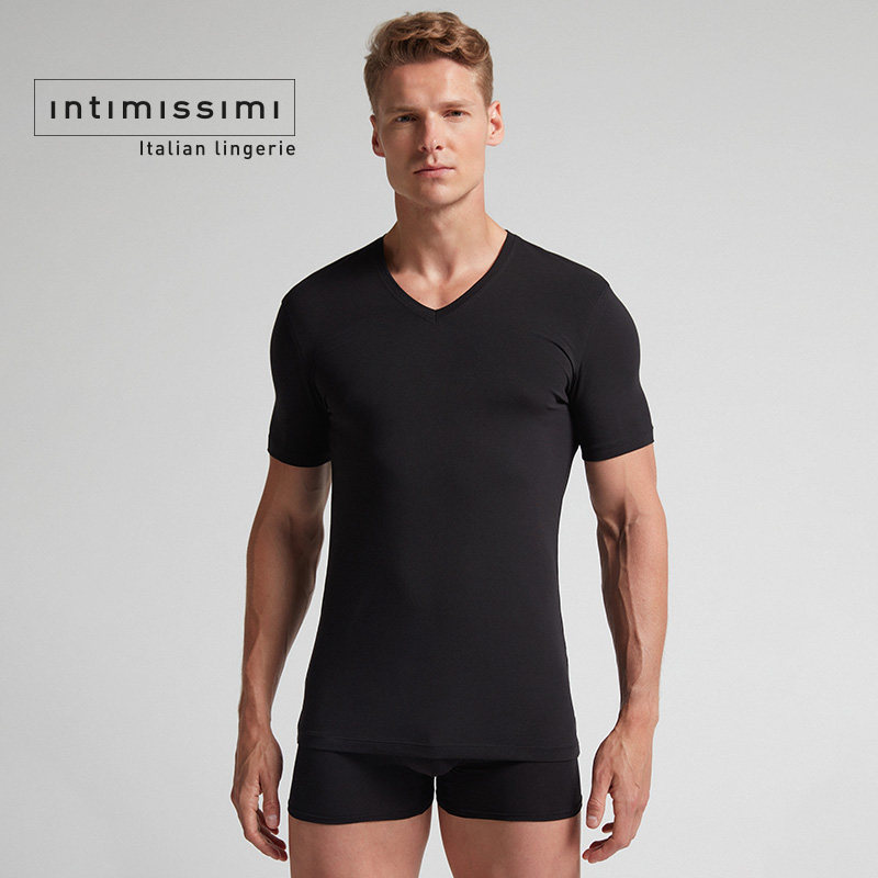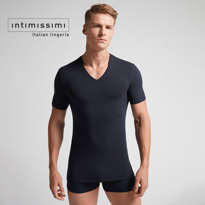 Intimissimi意舒漫简约男士轻薄V领棉质短袖打底T恤CMU12B