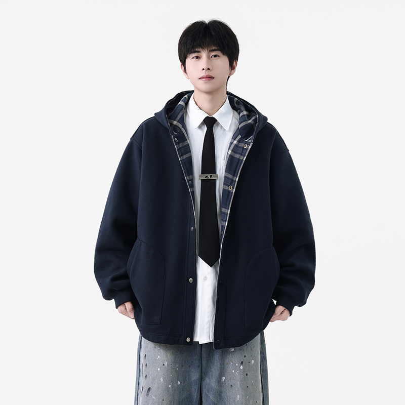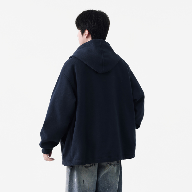 开衫卫衣男款秋季2025新款潮牌拼色美式复古男生休闲暗扣连帽外套