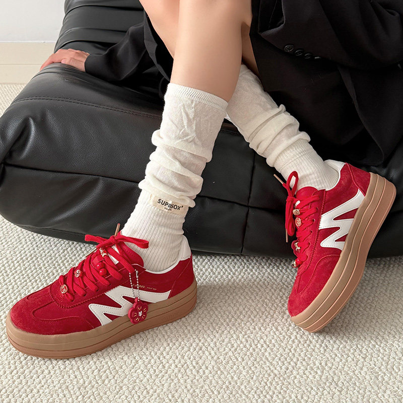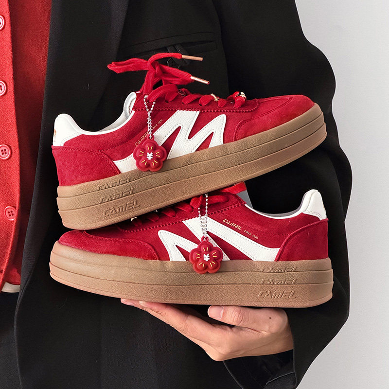 骆驼红色德训鞋女鞋2026春季厚底增高板鞋女复古休闲鞋百搭运动鞋