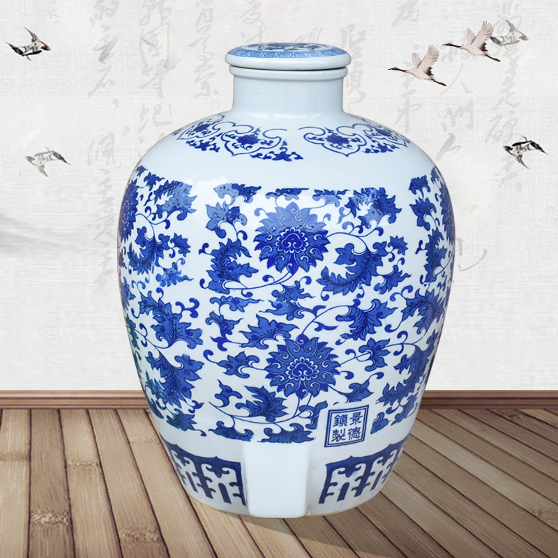 景德镇陶瓷酒坛子青花家用10斤密封酒罐50斤酿酒缸仿古中式酒壶