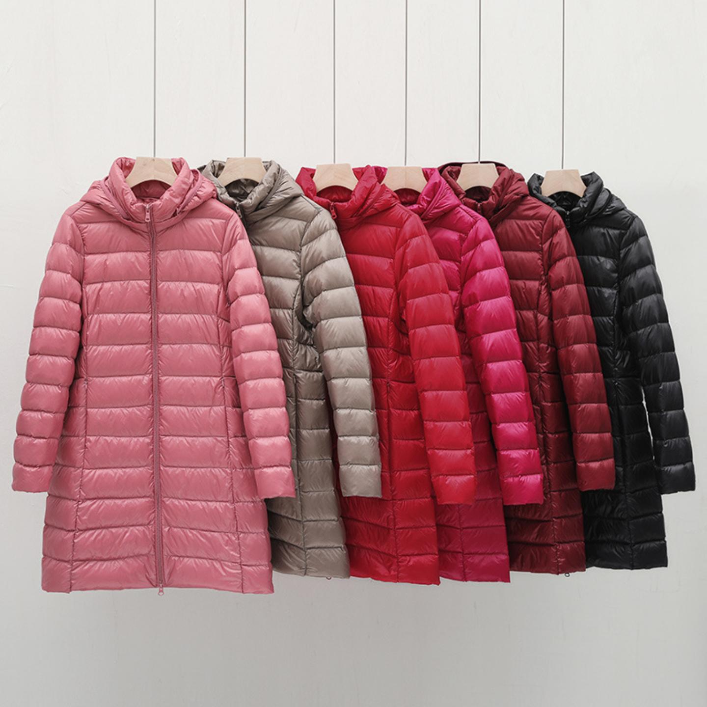 九江羽绒官方旗舰店轻薄款羽绒服女中长款修身羽绒外套加肥大码脱