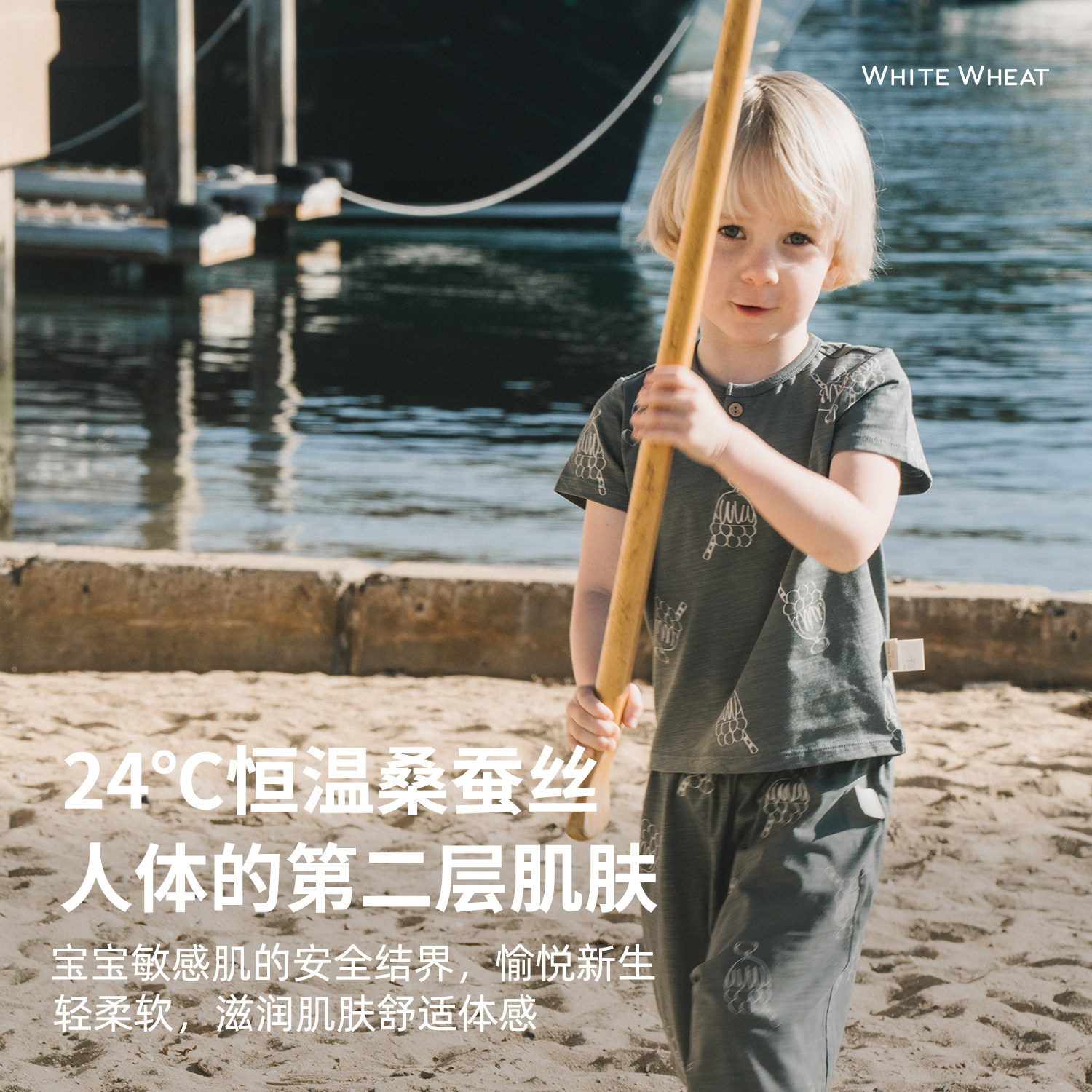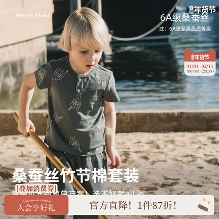 whitewheat儿童2025夏季新款男女童竹节棉T恤蚕丝休闲薄短袖套装