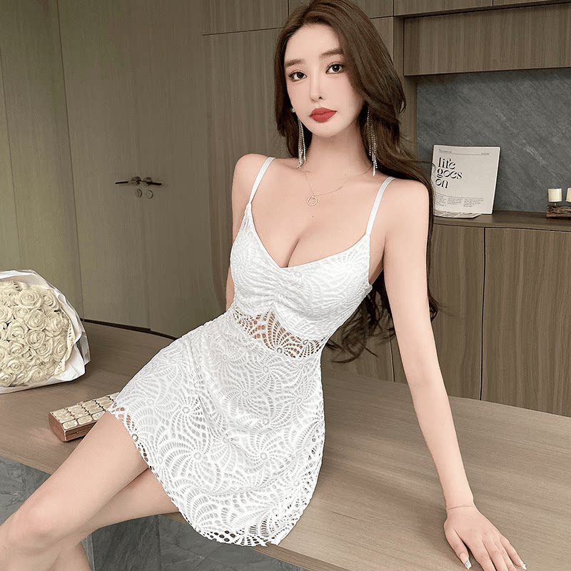 夜店女装带胸垫性感低胸露背蕾丝辣妹短裙显瘦会所工衣吊带连衣裙