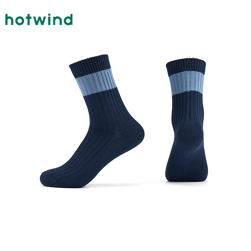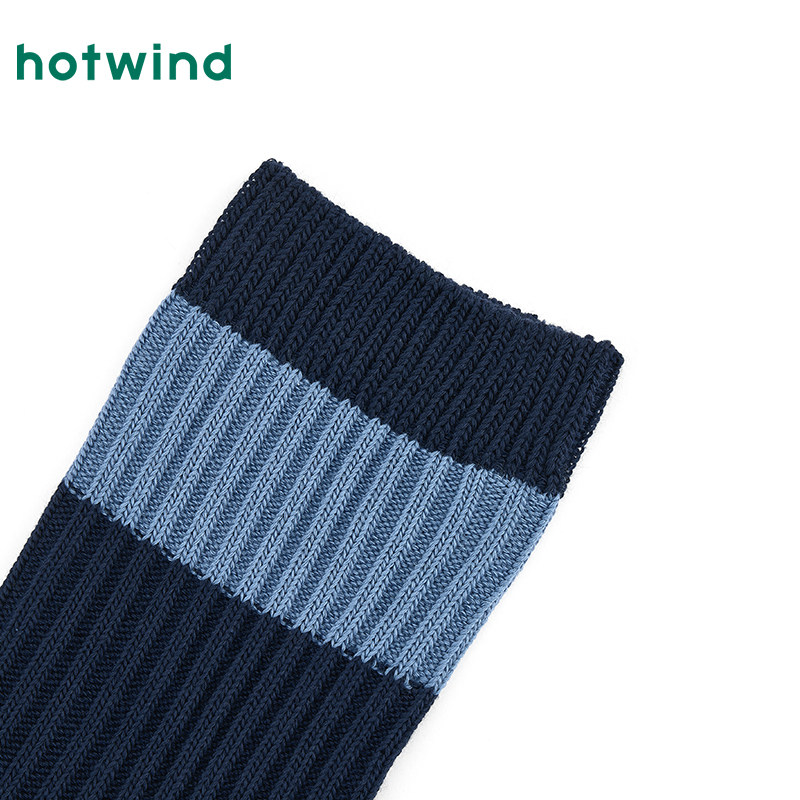 热风男士袜子2025年冬季新款拼色双针高帮袜精梳棉中筒袜