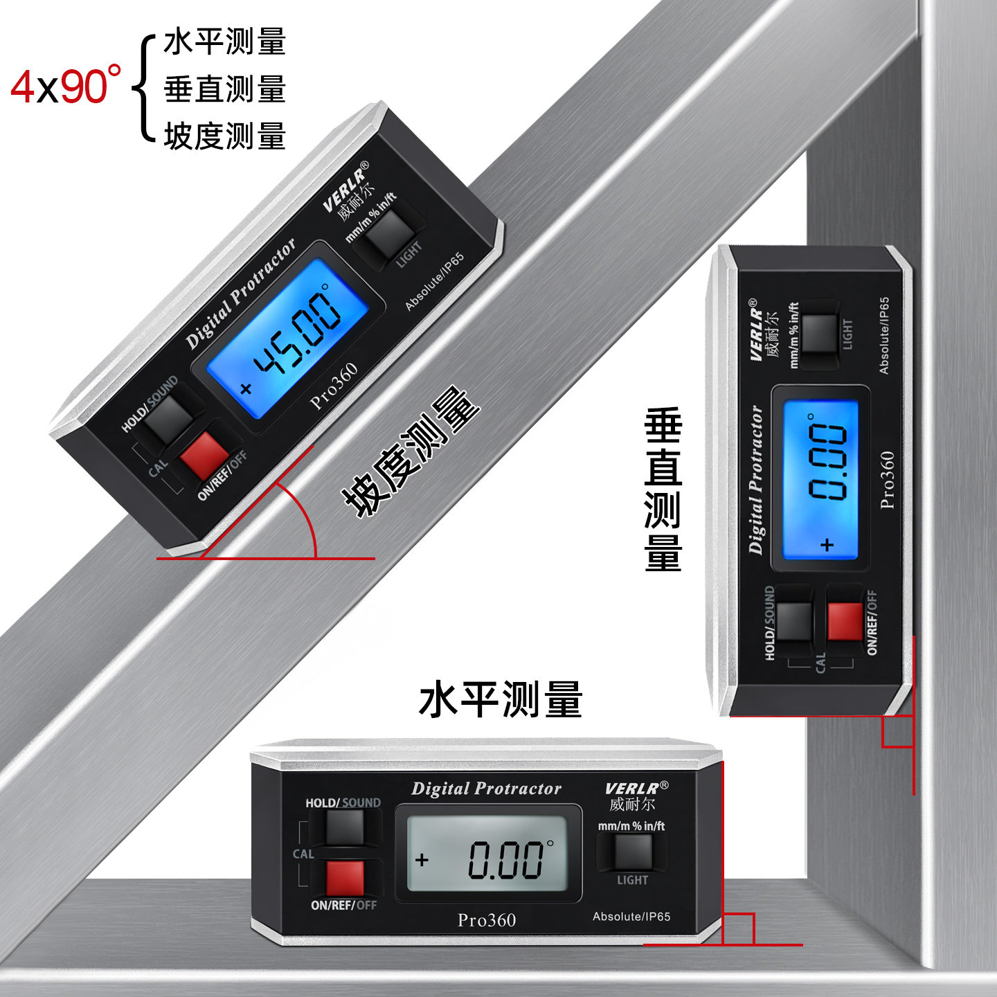 高精度数显角度尺pro360防水角度仪倾角仪数显水平仪360°测量仪