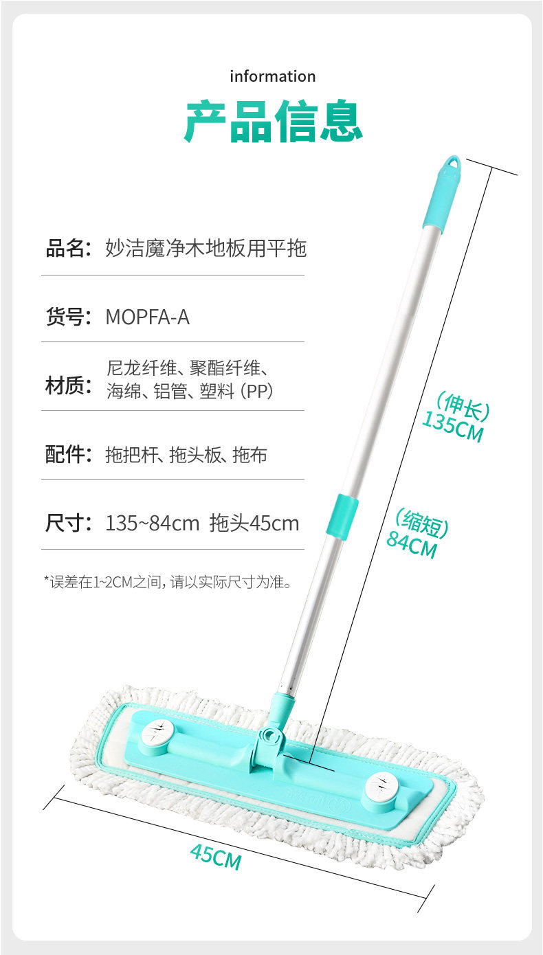 妙洁木地板专用平板拖把家用旋转干湿两用魔净一拖净平板拖把拖布