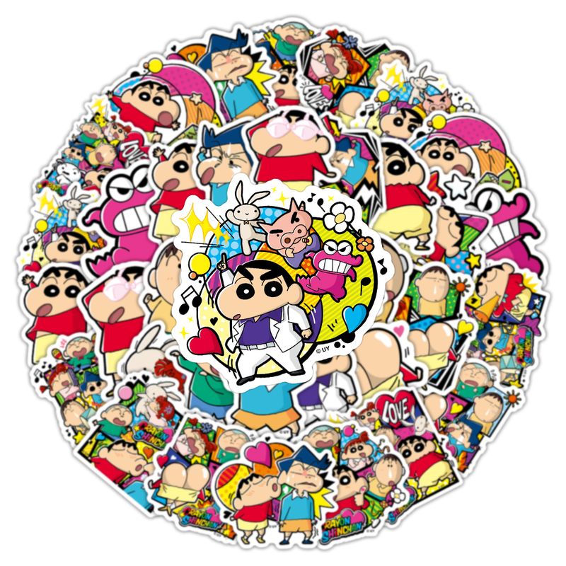 【官方正版】100张蜡笔小新搞怪头盔贴纸可爱卡通动漫装饰小图案防水创意手帐行李箱电脑手机壳平板吉他贴画