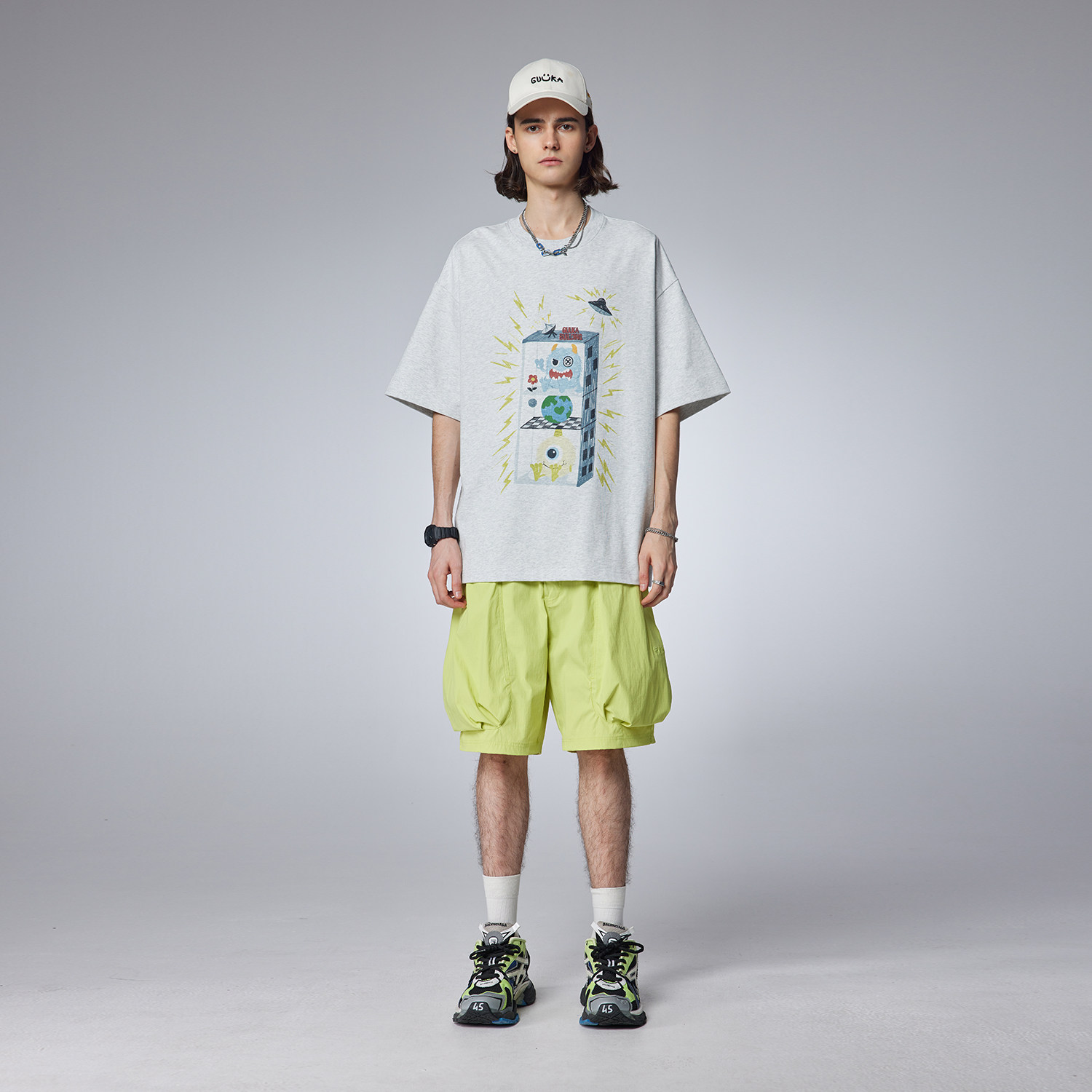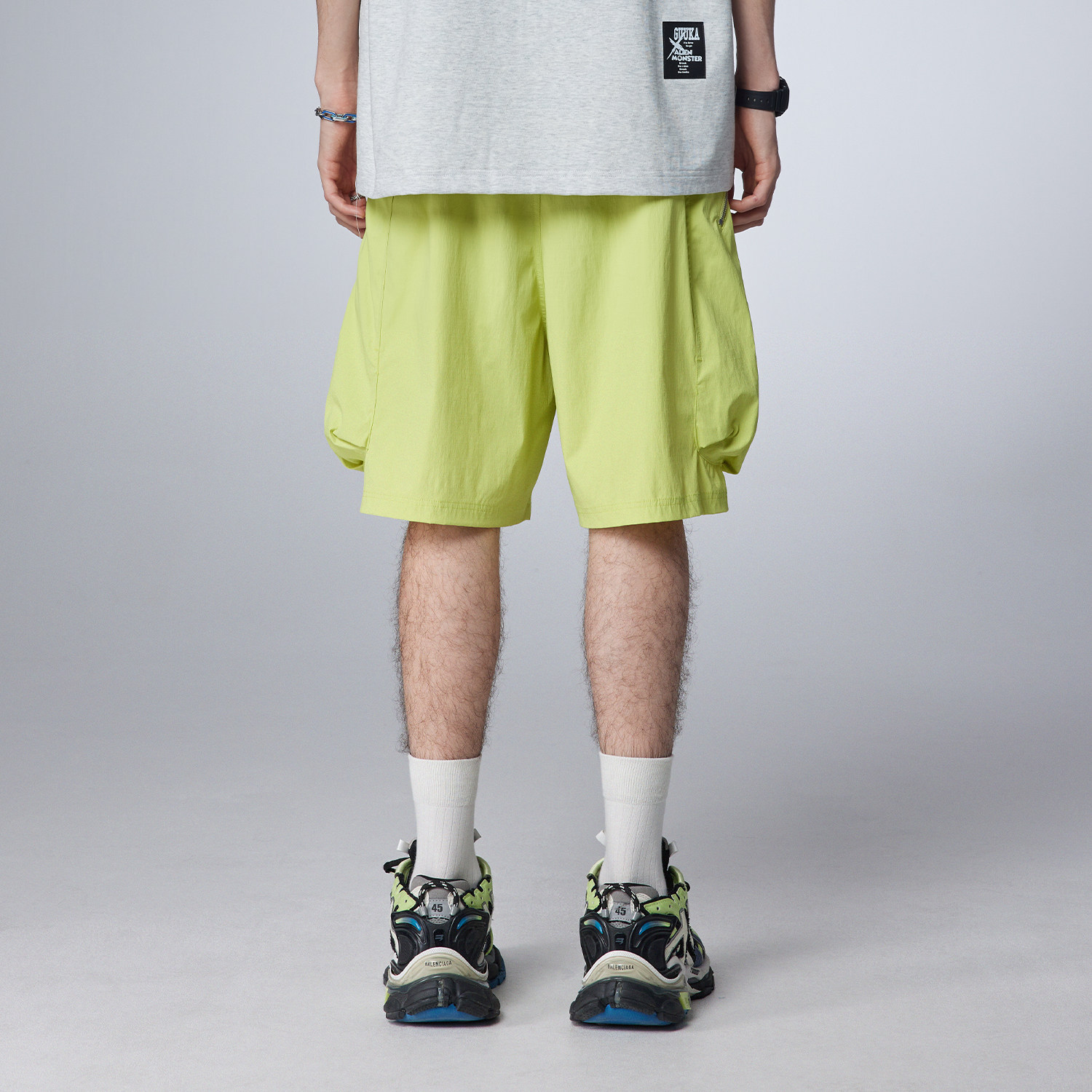 GUUKA潮牌荧光绿短裤男夏季新款 情侣多巴胺穿搭大口袋五分裤宽松