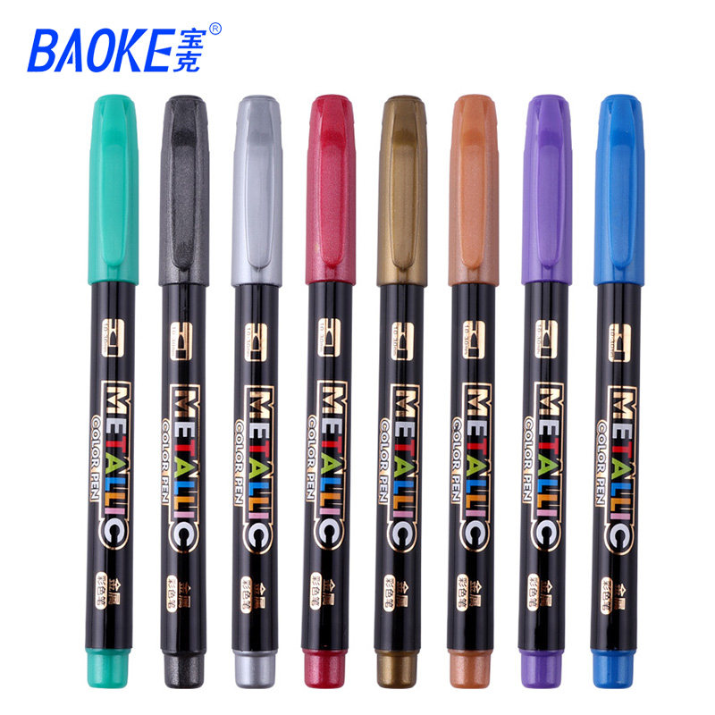 宝克MP570金属彩色笔不掉色防水金色高光水性马克笔永久黑色记号彩色一套diy相册黑卡银红色
