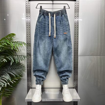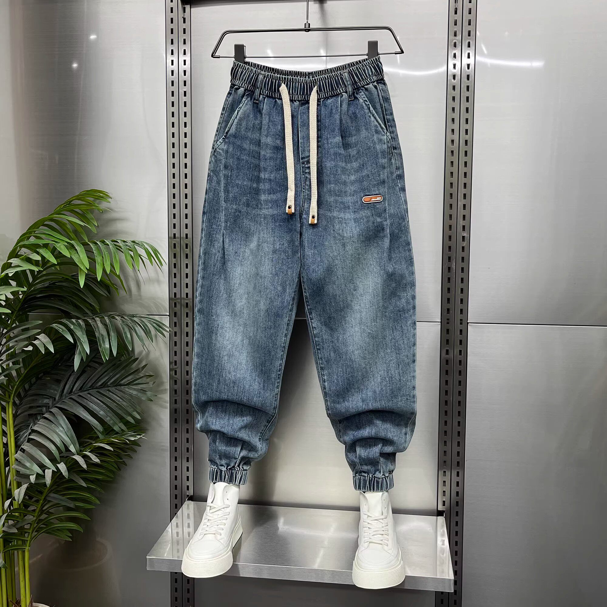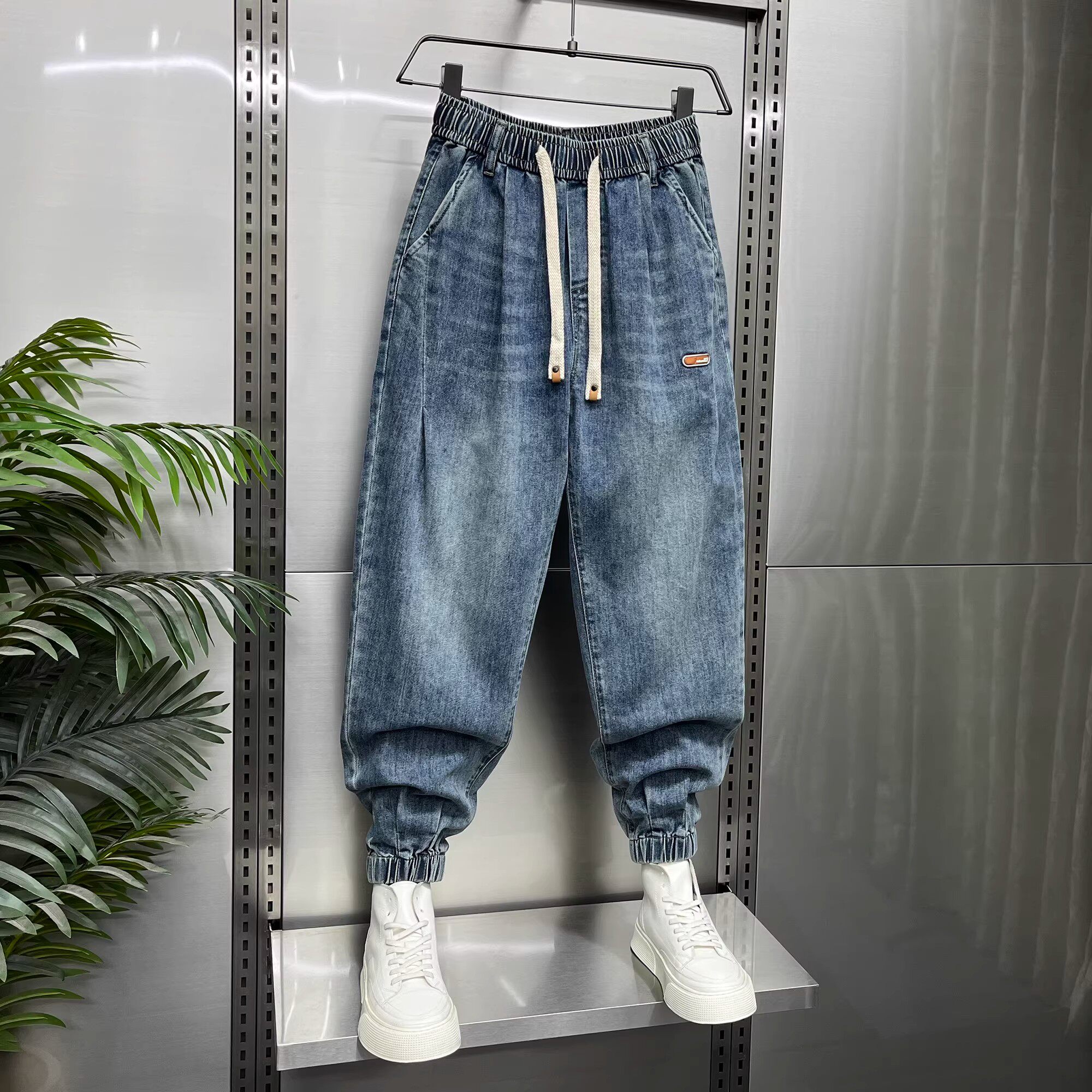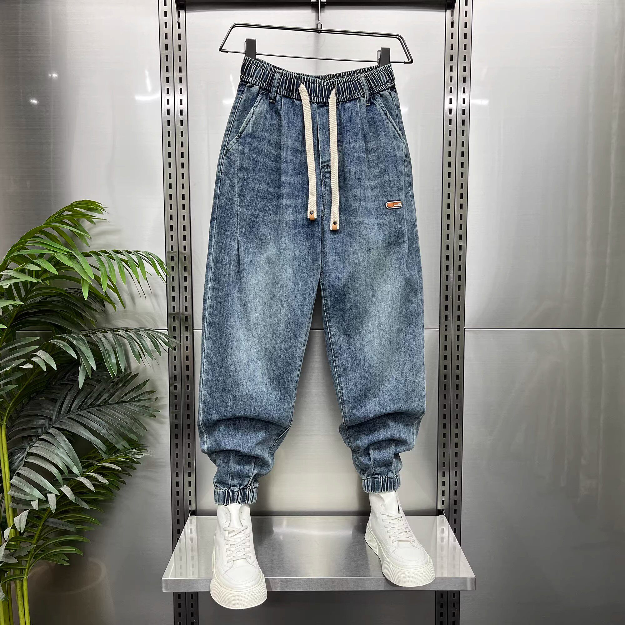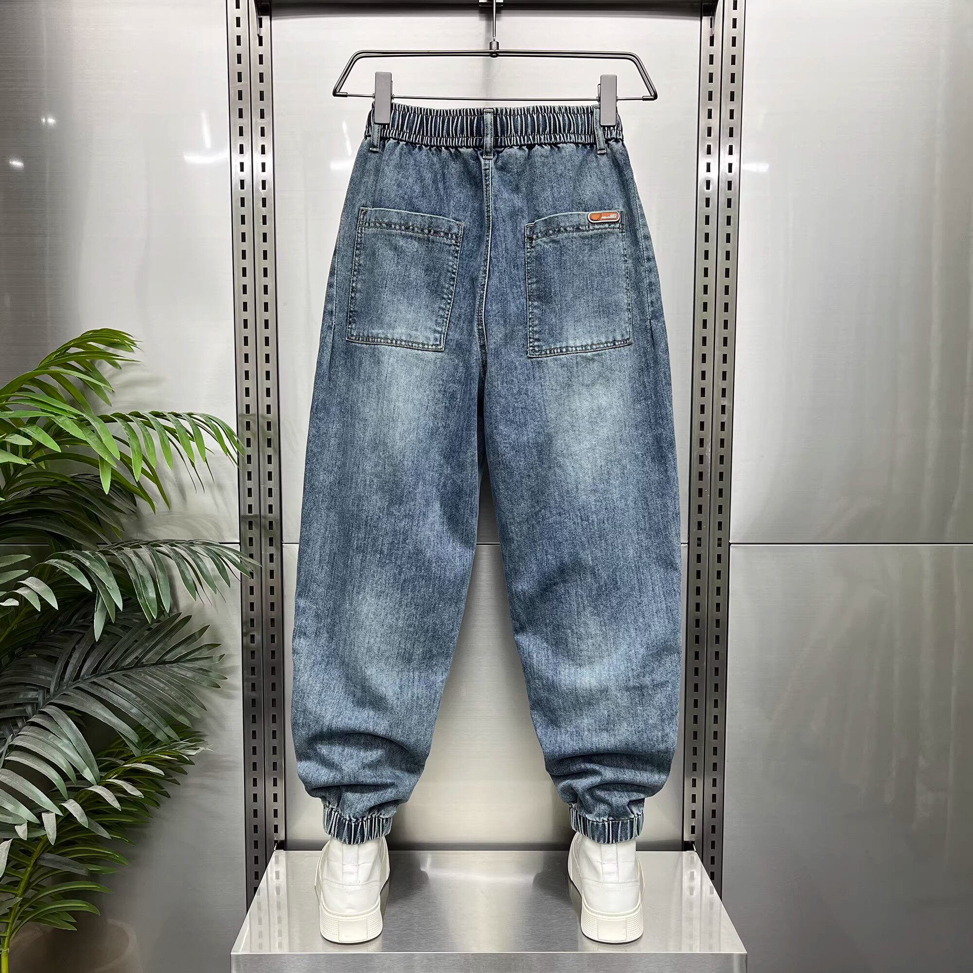 潮牌做旧水洗牛仔裤男春季新款潮流痞帅束脚裤春夏大码百搭九分裤