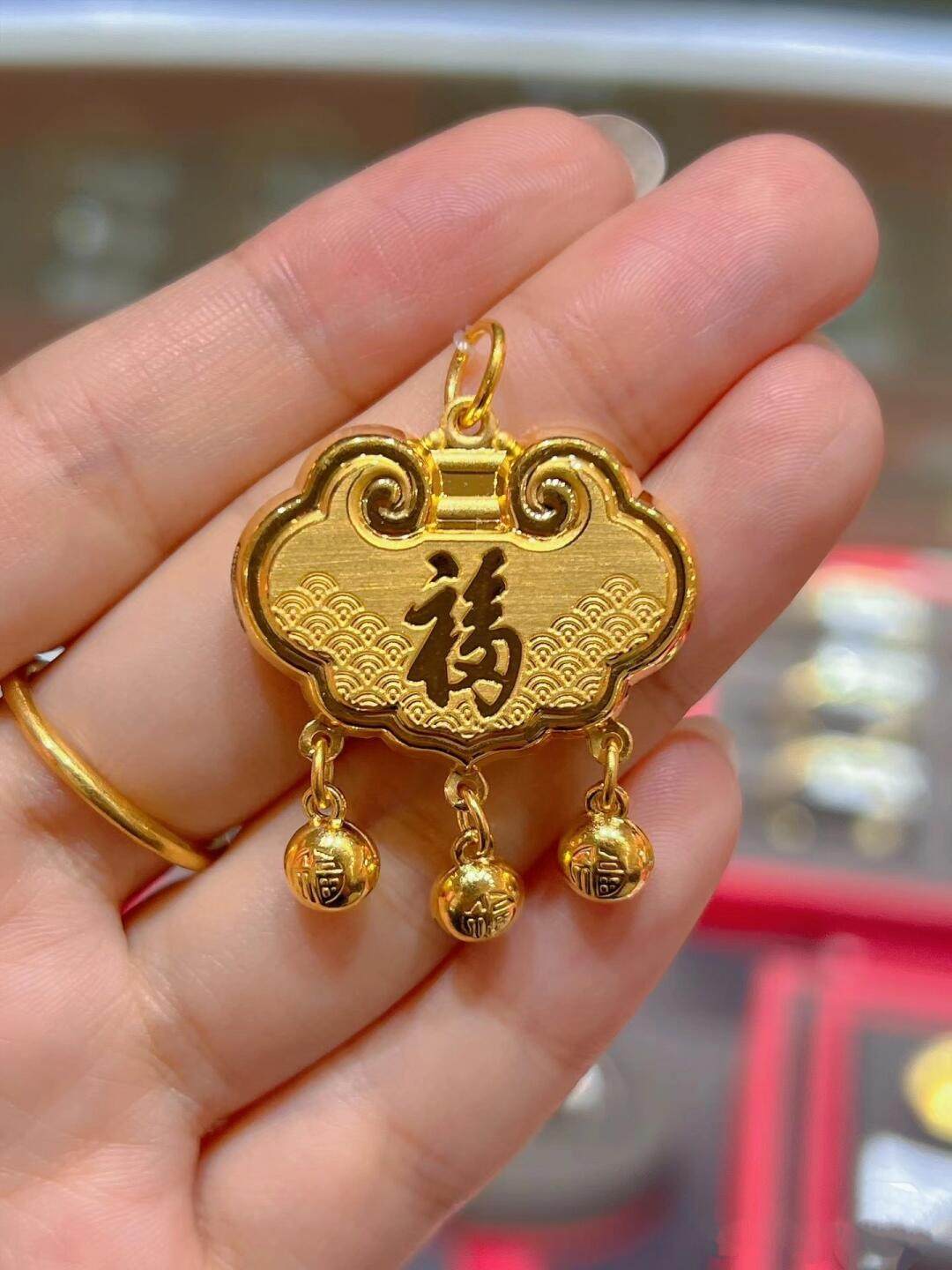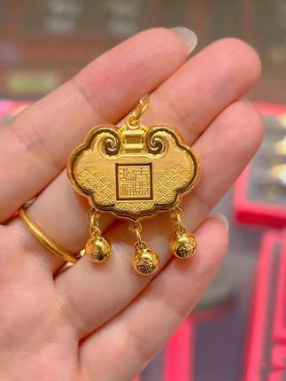 金包银福字平安锁吊坠天赐鸿福锁包宝宝周岁百岁长命锁新中式宝宝