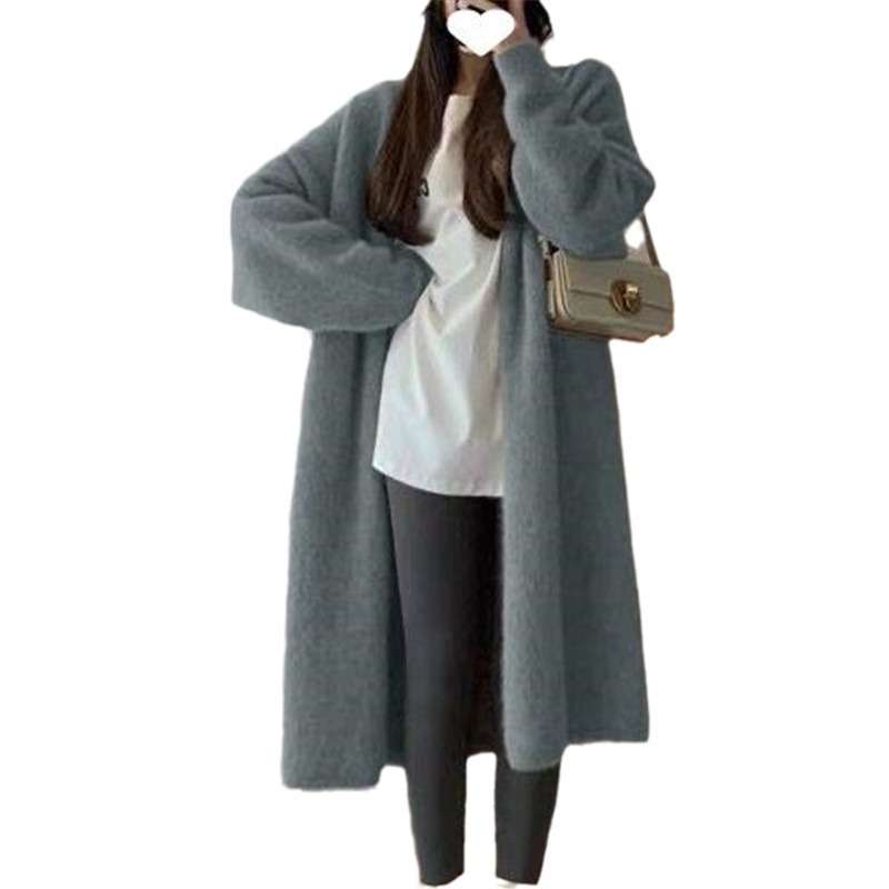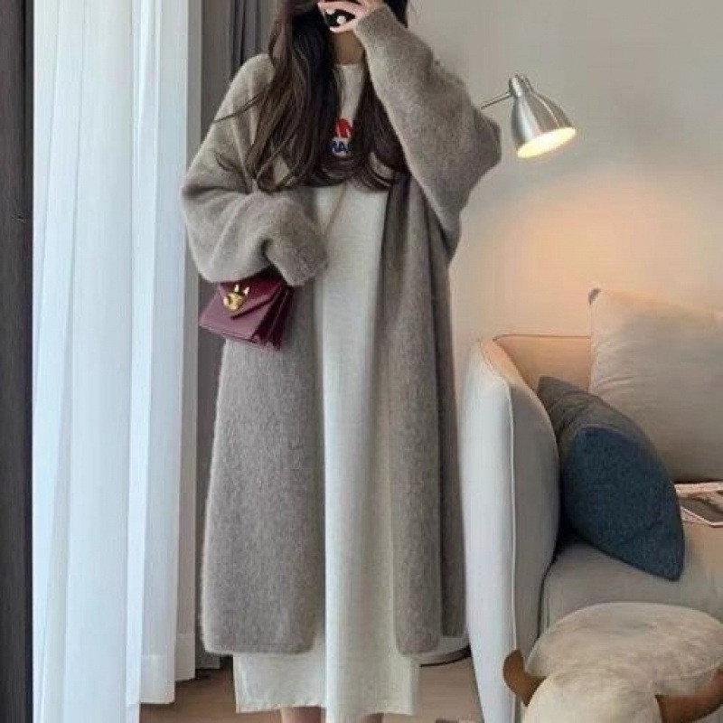 2024秋冬新款慵懒风加厚开衫女中长款宽松针织毛衣纯色过膝长外套