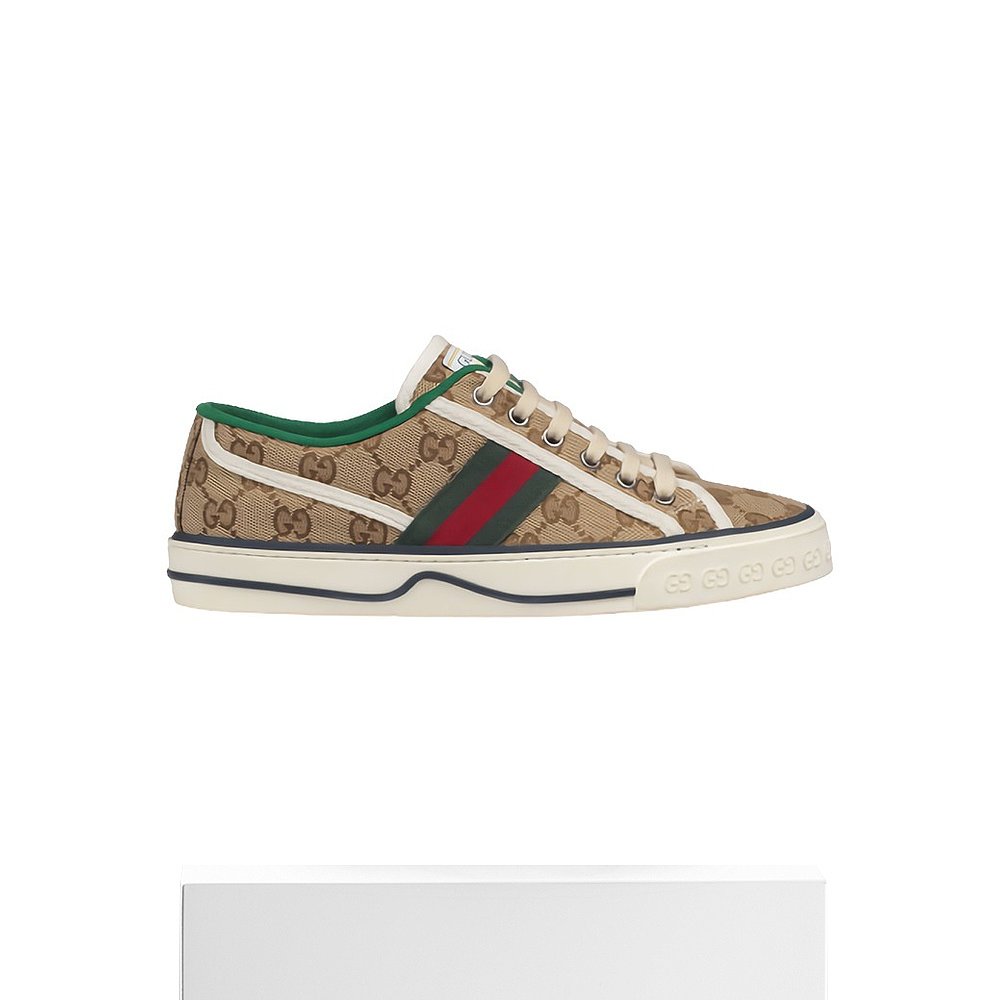 自营欧洲直邮GUCCI/古驰 1977系列 女士帆布低帮老花双G提花刺绣