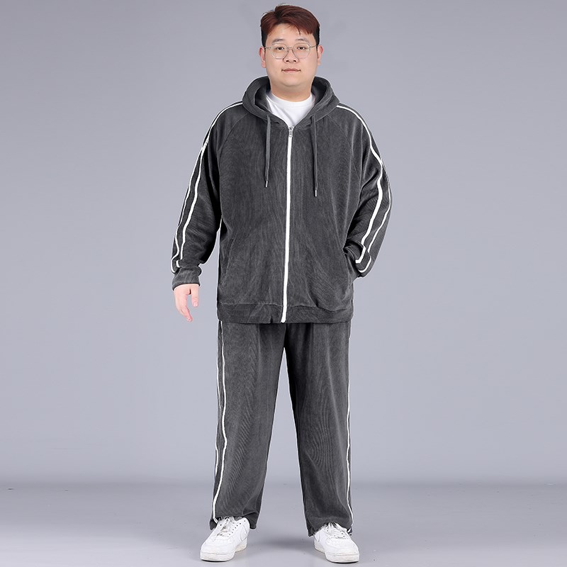 大码卫衣套装男士外套秋冬连帽开衫休闲卫衣胖子男装一套搭配显瘦