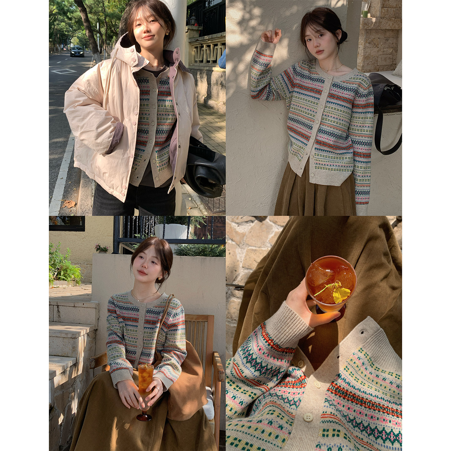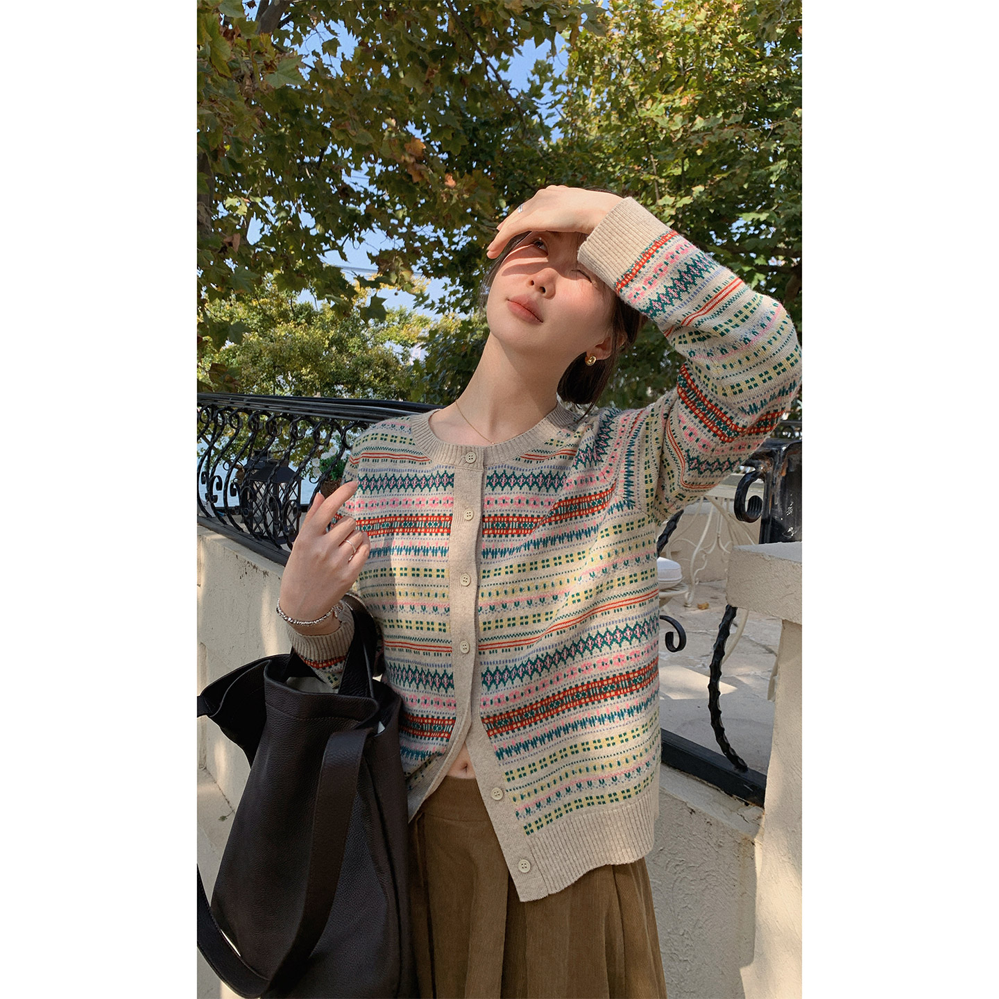 一三良品小个子 复古费尔岛提花羊毛针织衫毛衣开衫女冬内搭叠穿