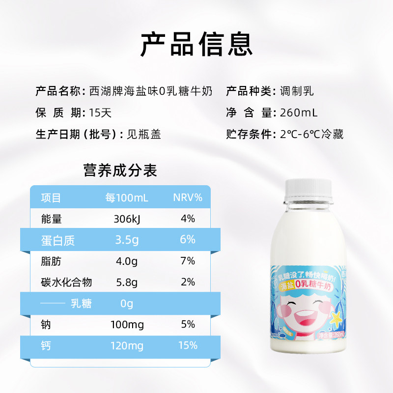 【杭州送奶到户】西湖牌海盐0乳糖牛奶260mL(每日新鲜配送)