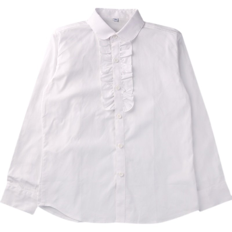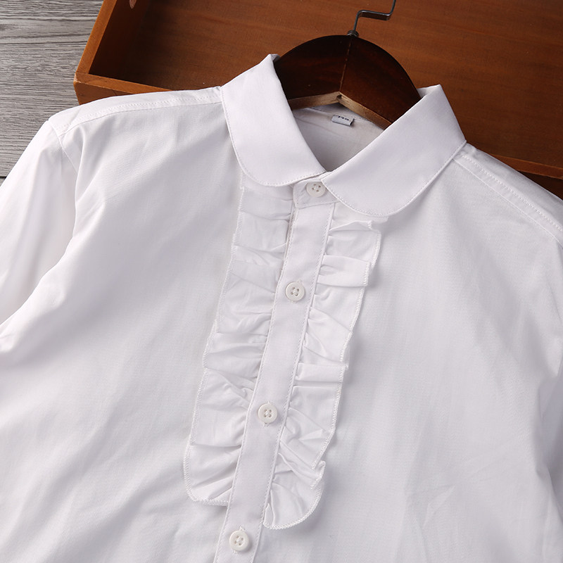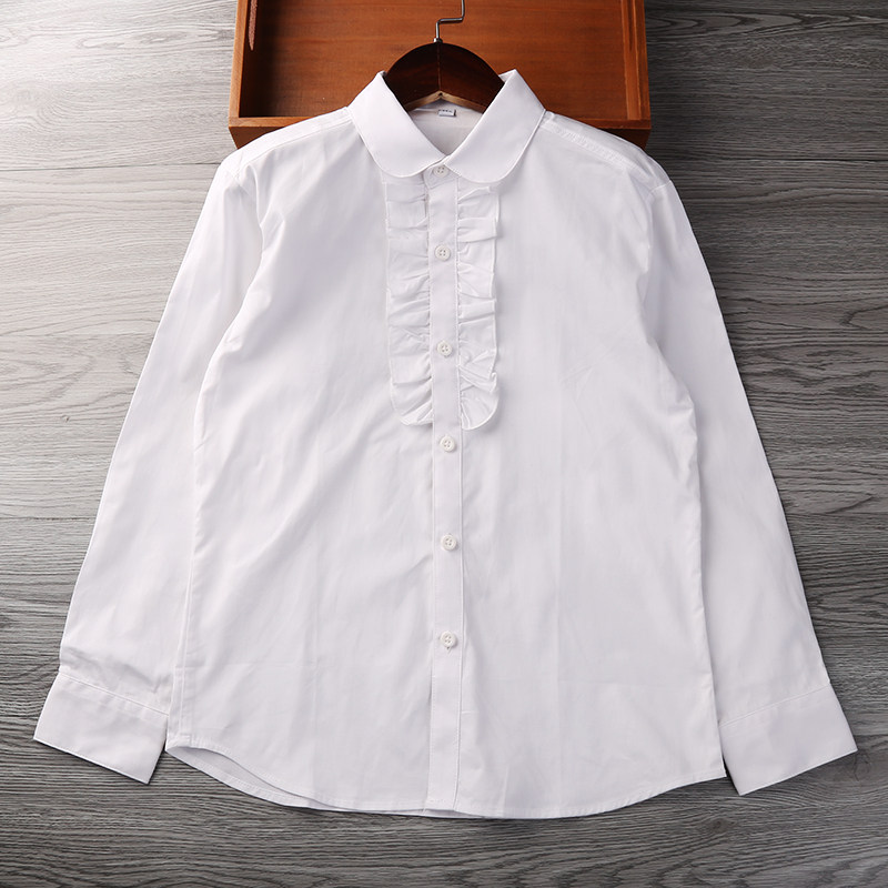 女童白衬衫中大童学生校服春秋装白色纯棉长袖衬衣花小学生学院风