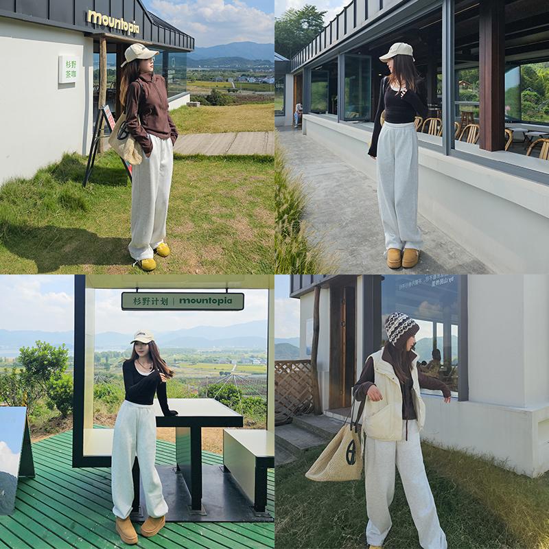 小个子灰色运动裤子女秋冬2024新款高腰显瘦垂感加绒直筒美式卫裤