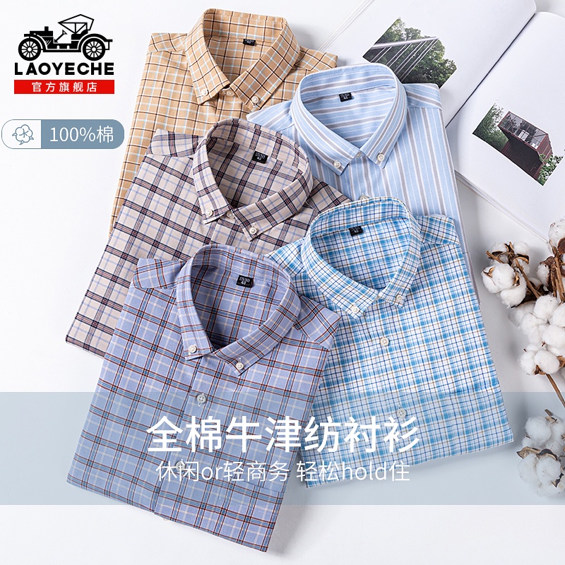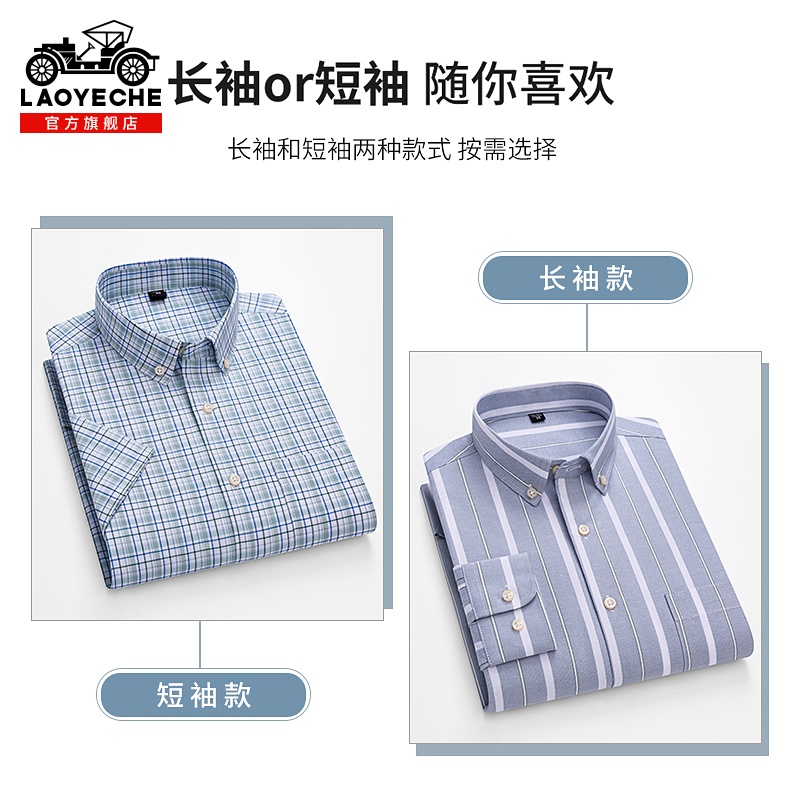 老爷车格子长袖衬衫男士2025年秋季新款纯棉休闲条纹短袖衬衣男