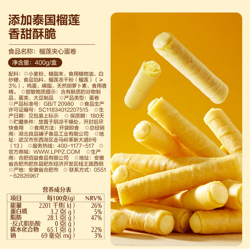 良品铺子榴莲榴莲夹心蛋卷下午茶