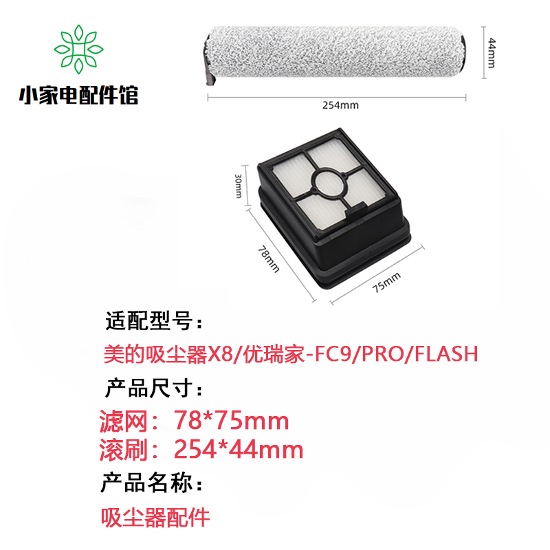 适配美的X8洗地机配件 优瑞家FC9洗地机 滚刷 滤网 清洁刷配件