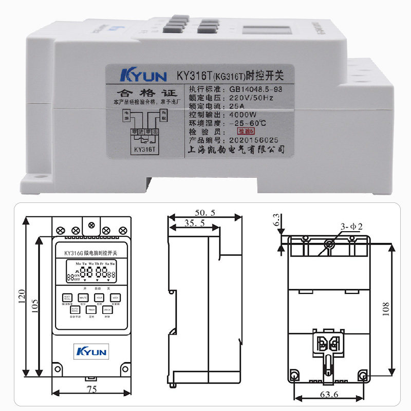 KG316T微电脑时控开关单相220V定时器路灯控制定时器家用循环定时