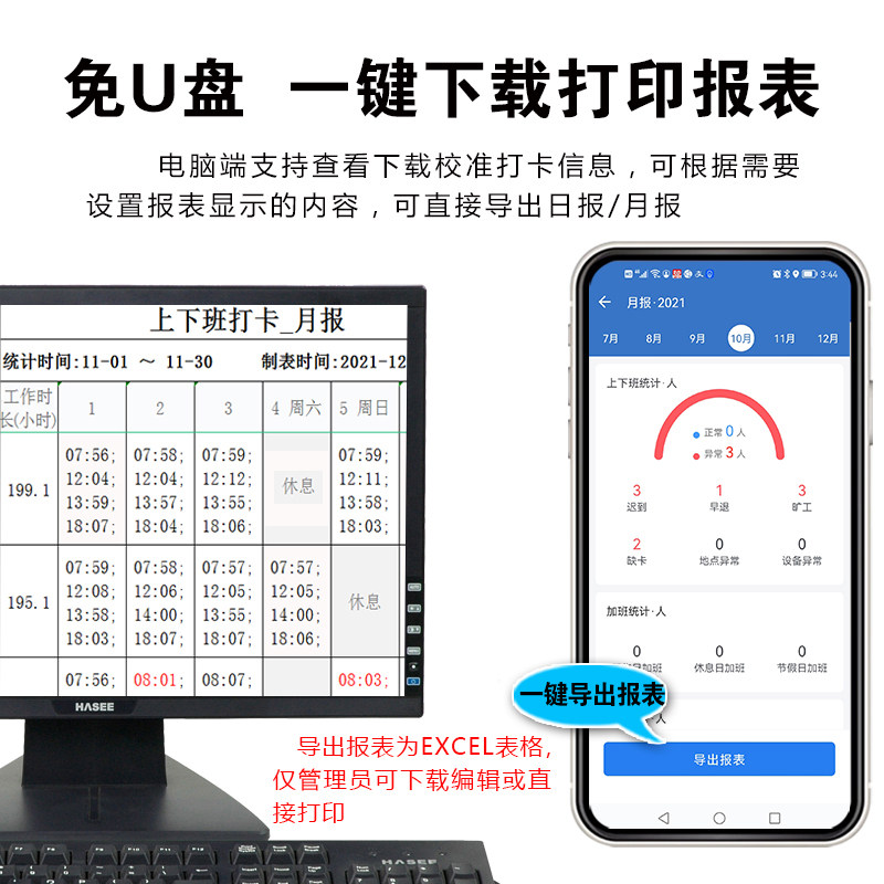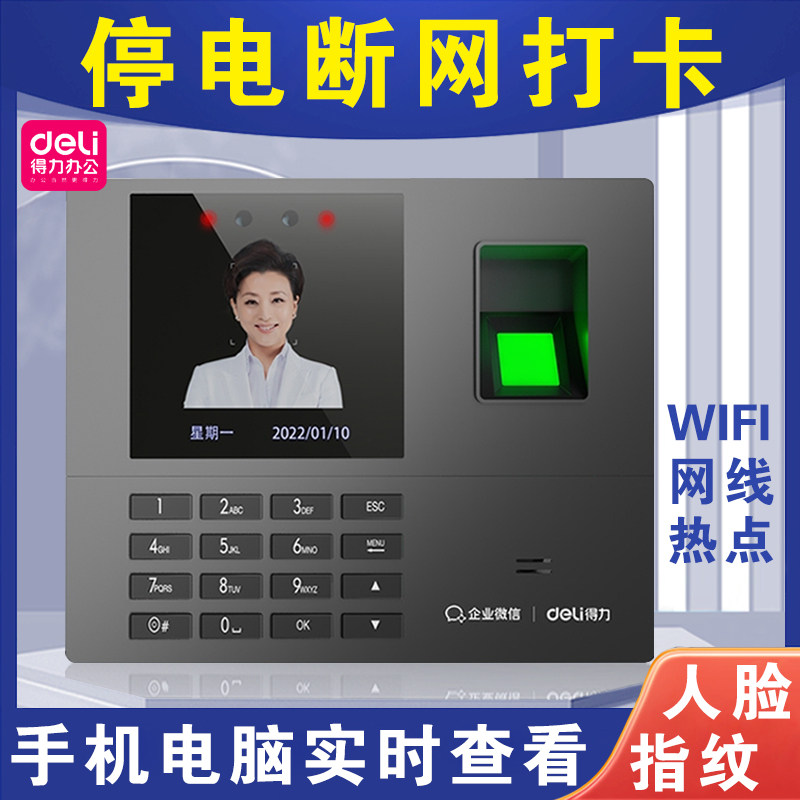 得力智能指纹人脸识别打卡机考勤机员工上班刷脸手机电脑实时查看