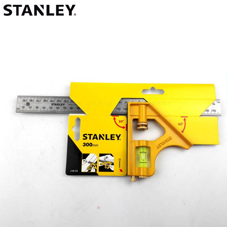 史丹利公制活动直角尺300mm木工拐尺45度90度移动组合角尺带水泡