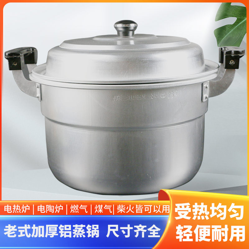 老式铝锅加厚平底特厚蒸锅家用铝汤锅双耳柴火灶专用大锅烧水铝锅