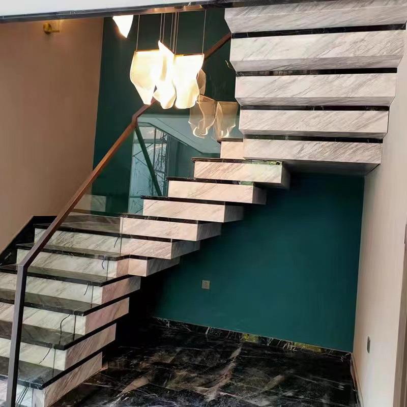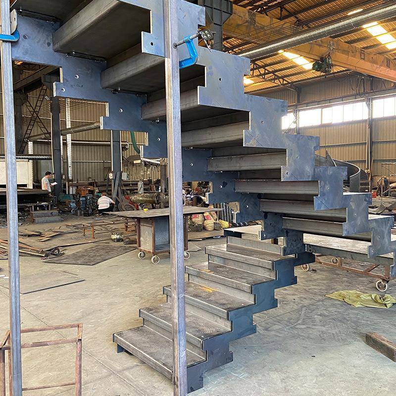 别墅复式叠加楼梯钢结构踏步悬浮梯简约阁楼旋转楼梯室内玻璃楼梯