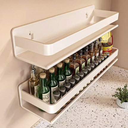 白色厨房置物架免打孔不锈钢壁挂式调味料品罐架子家用多功能收纳