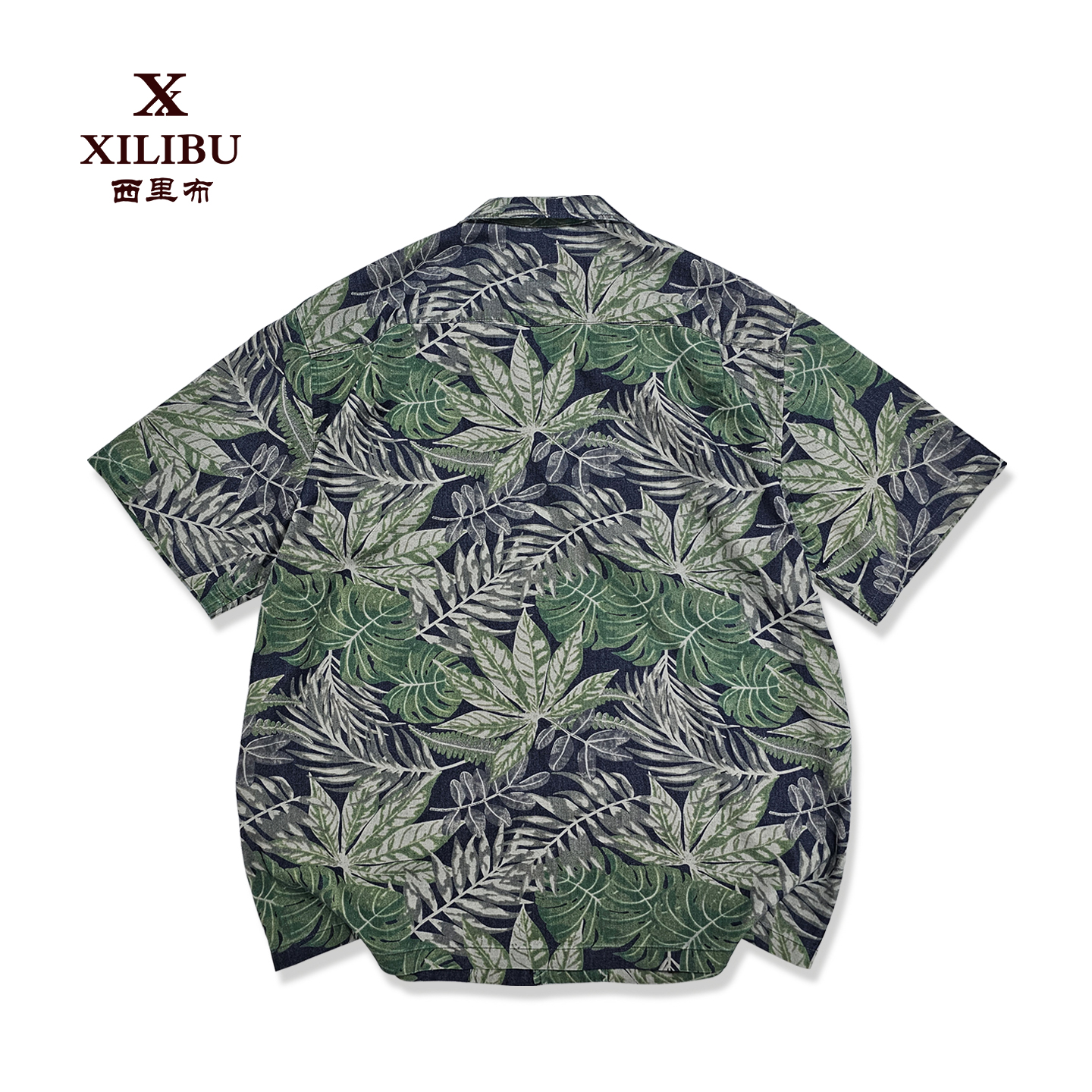 西里布纯棉古巴领短袖咔叽复古休闲印花夏威夷衬衫夏季新款非rr