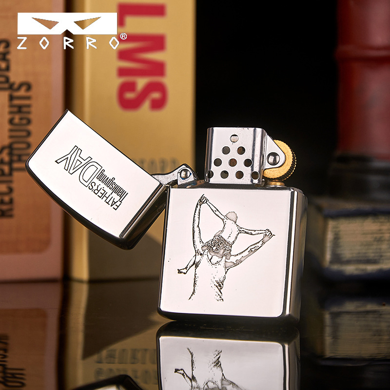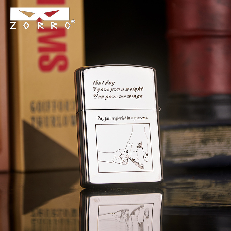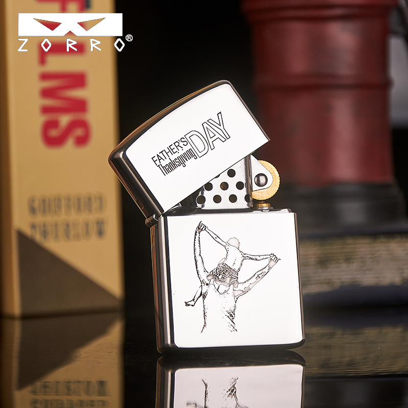 zorro佐罗正品砂轮煤油打火机铜壳二代眼镜标白铜刻父子父爱如山